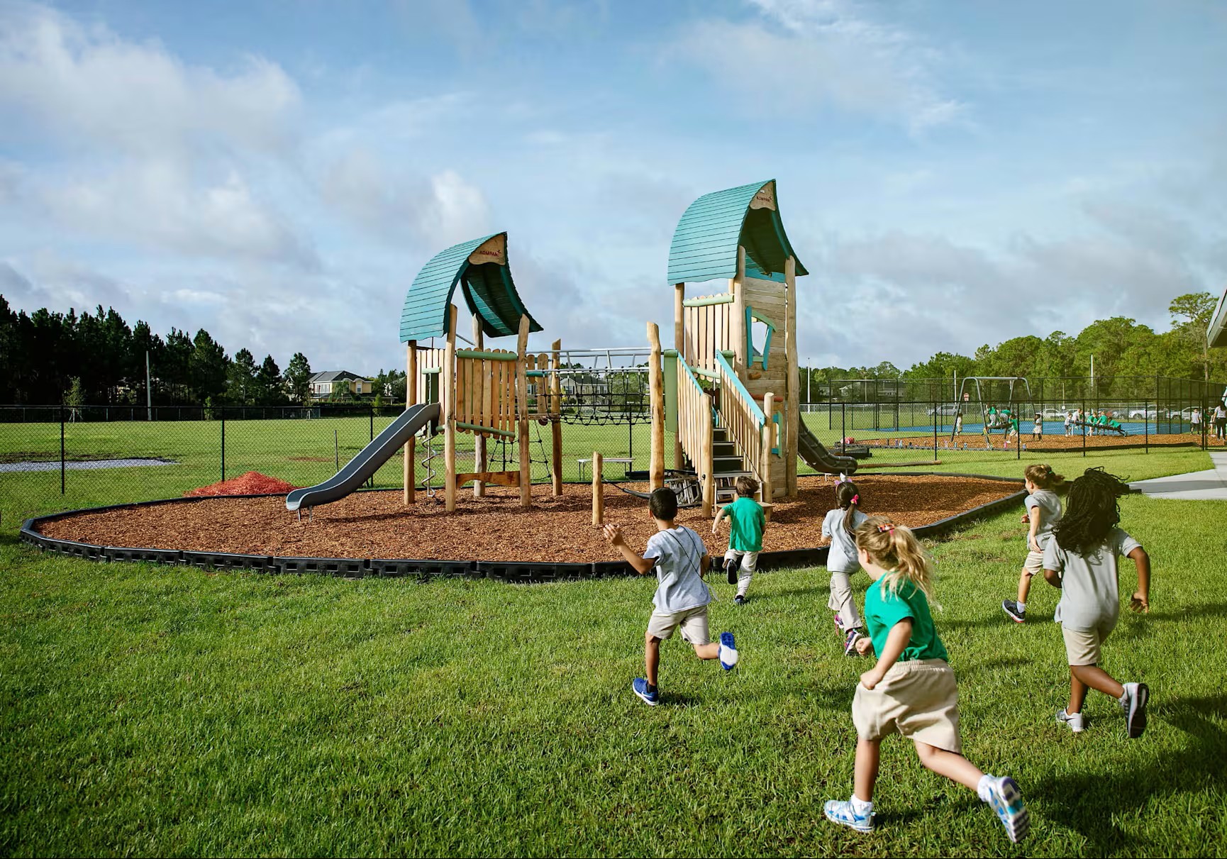 Desde niños pequeños hasta adolescentes, creamos zonas de recreo escolares que se adaptan a todos los niveles de edad y capacidades a lo largo de los años escolares.