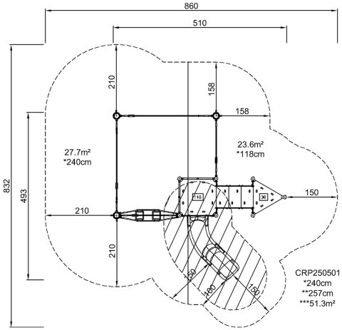 | Zona de seguridad | 860x832cm |