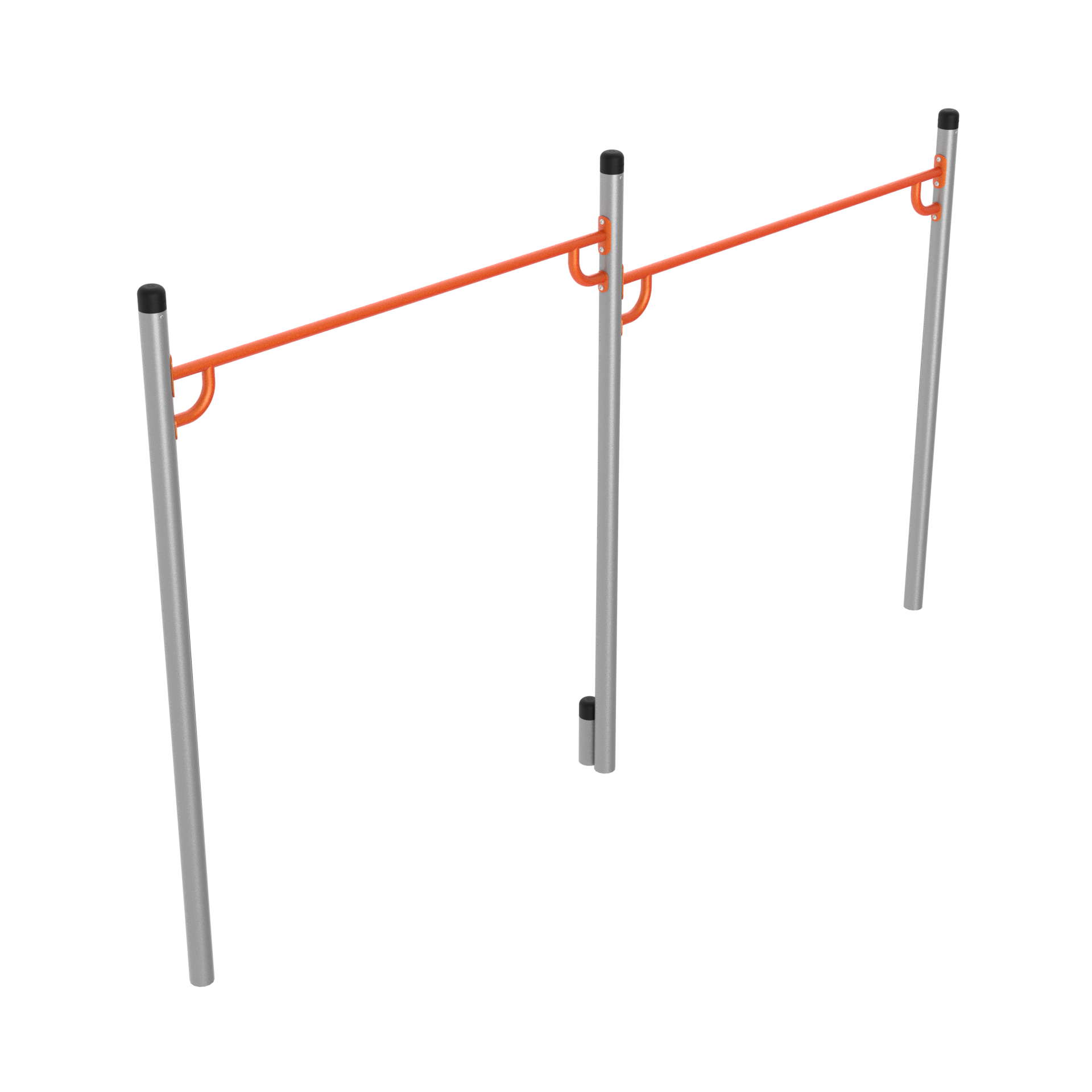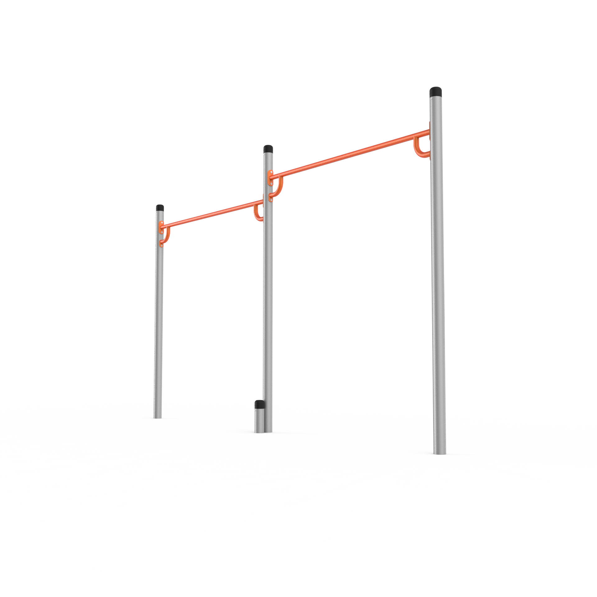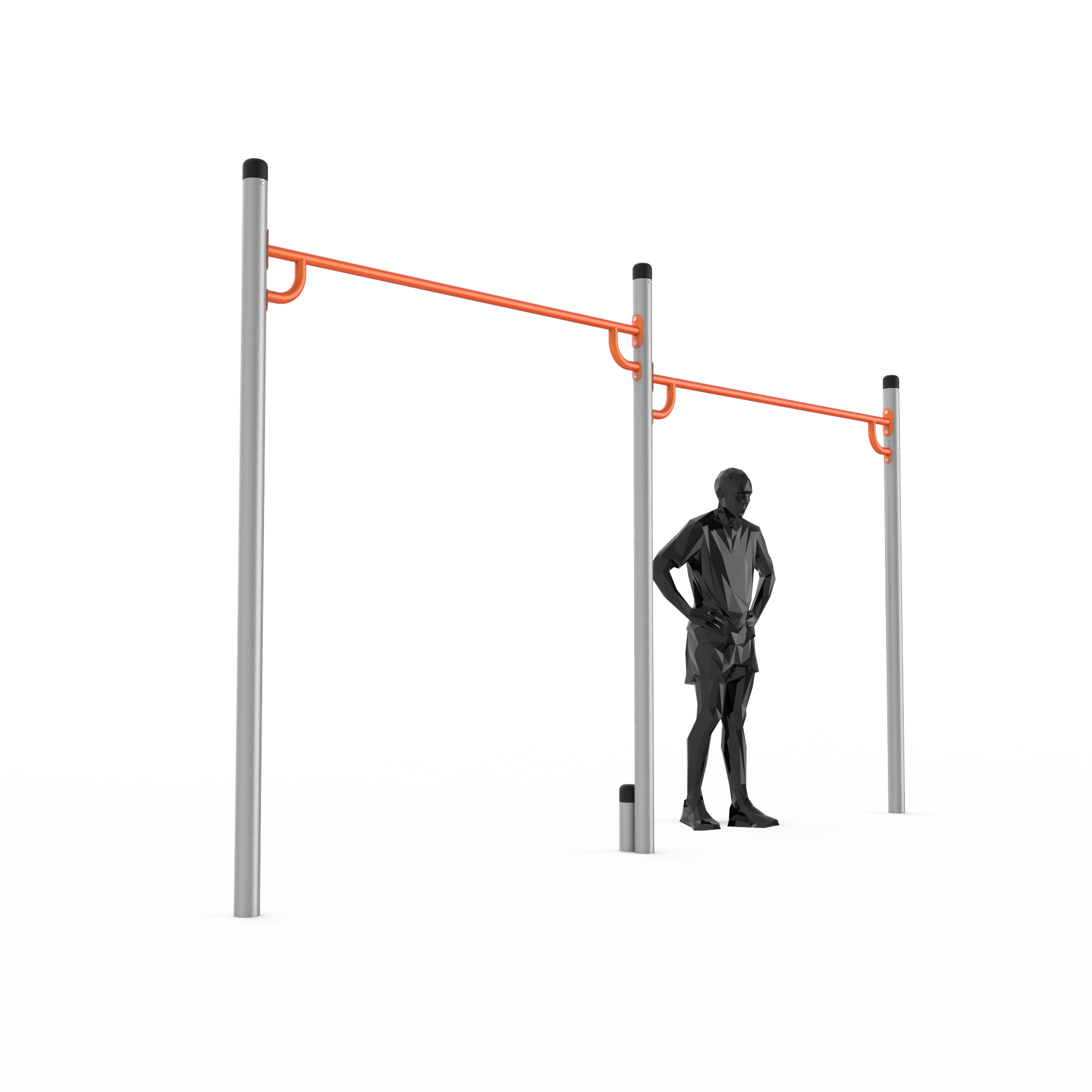 Las barras altas dobles en calistenia son una herramienta versátil que permite una variedad de ejercicios, su versión freestyle cuenta con barras más anchas permitiendo toda clase de acrobacias.