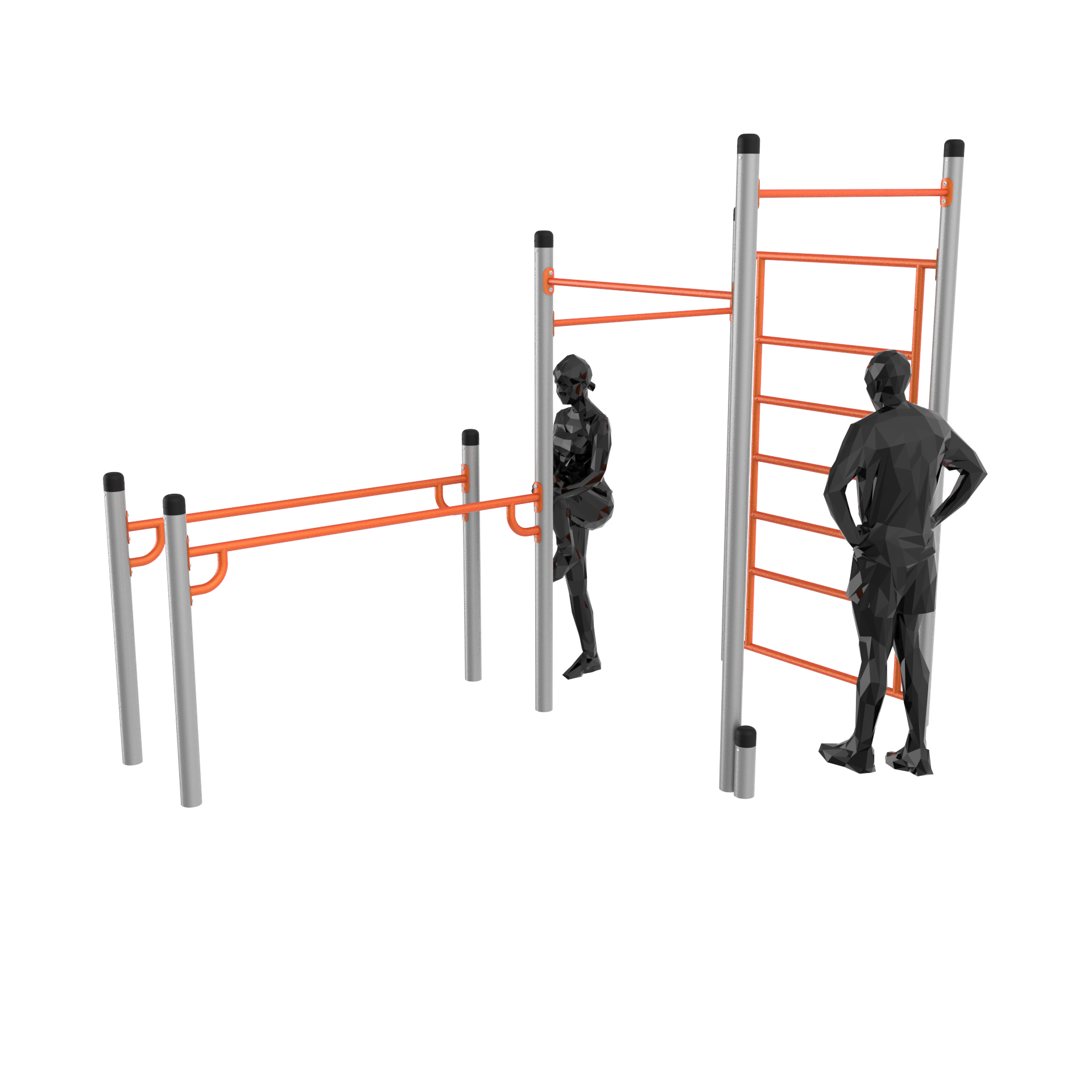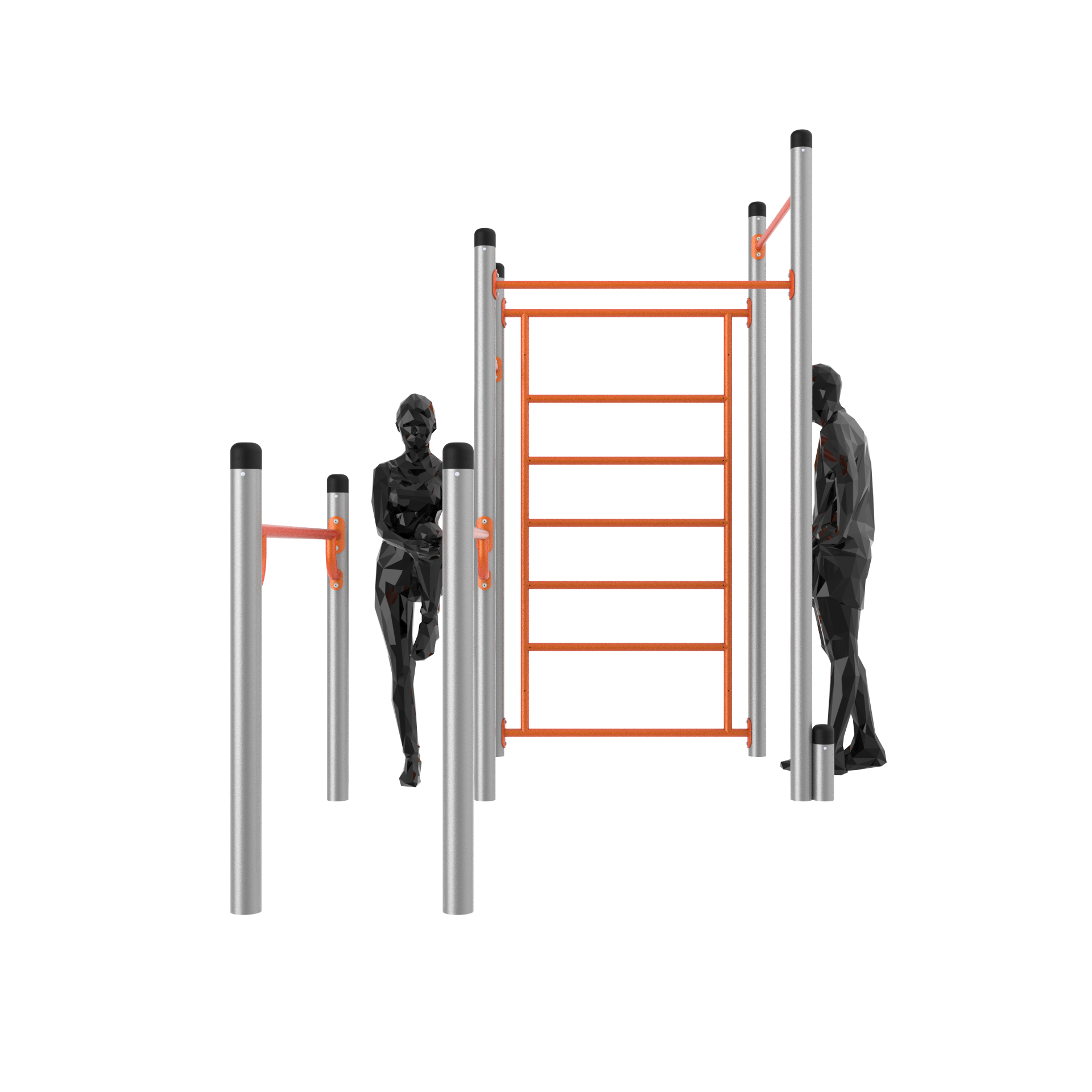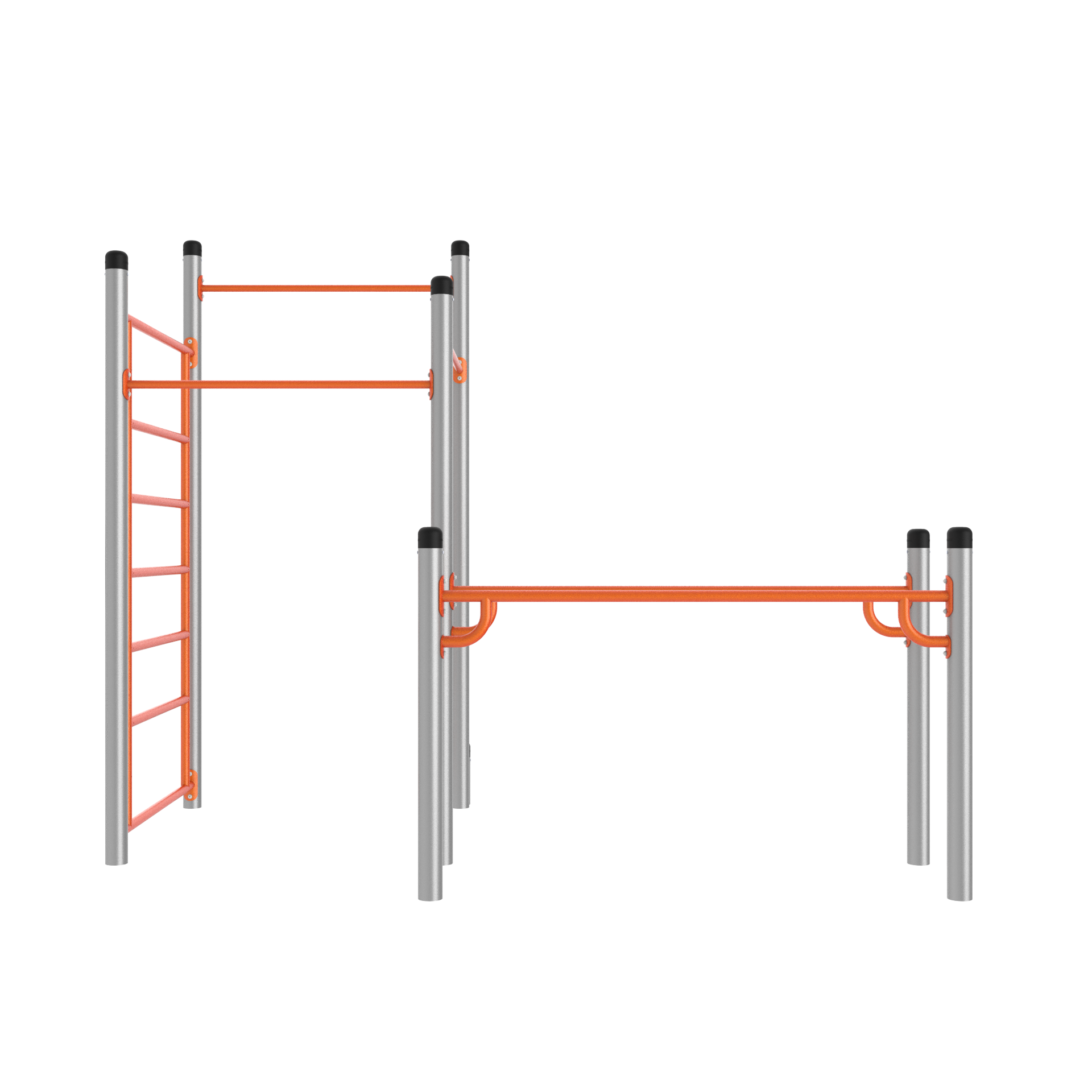 Cluster de calistenia compacto con módulos indispensables para realizar ejercicios básicos.