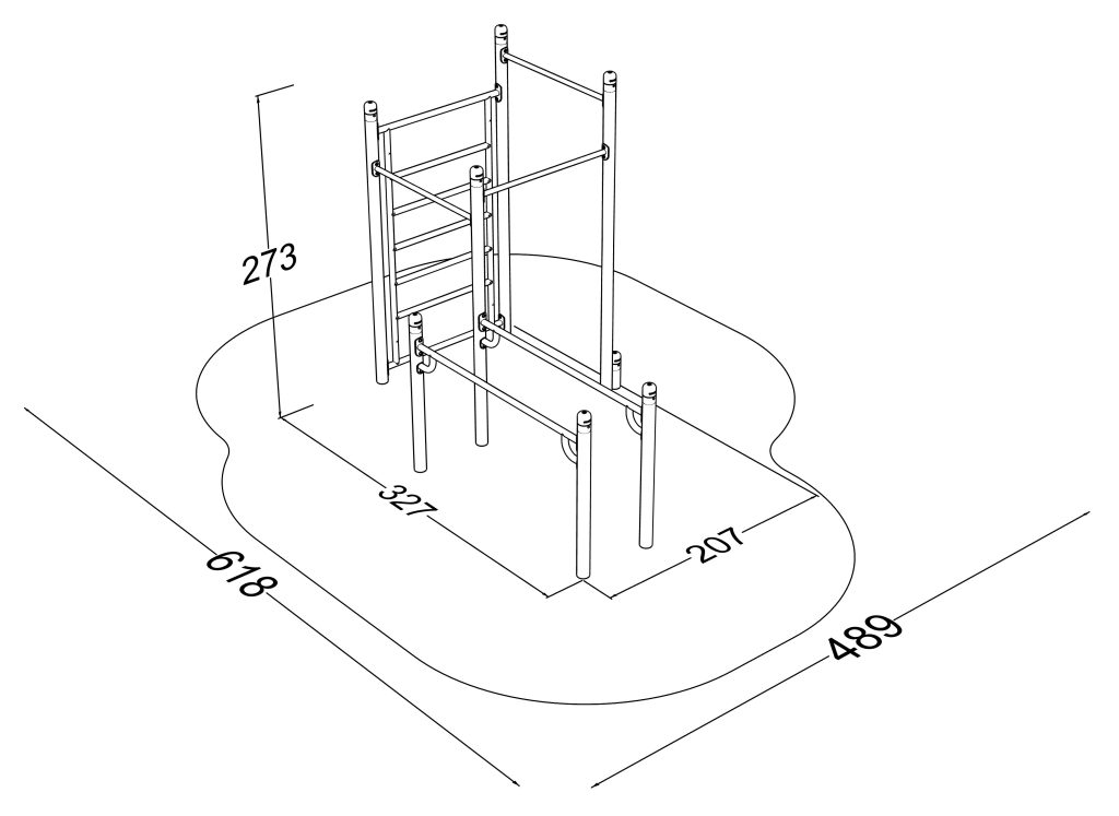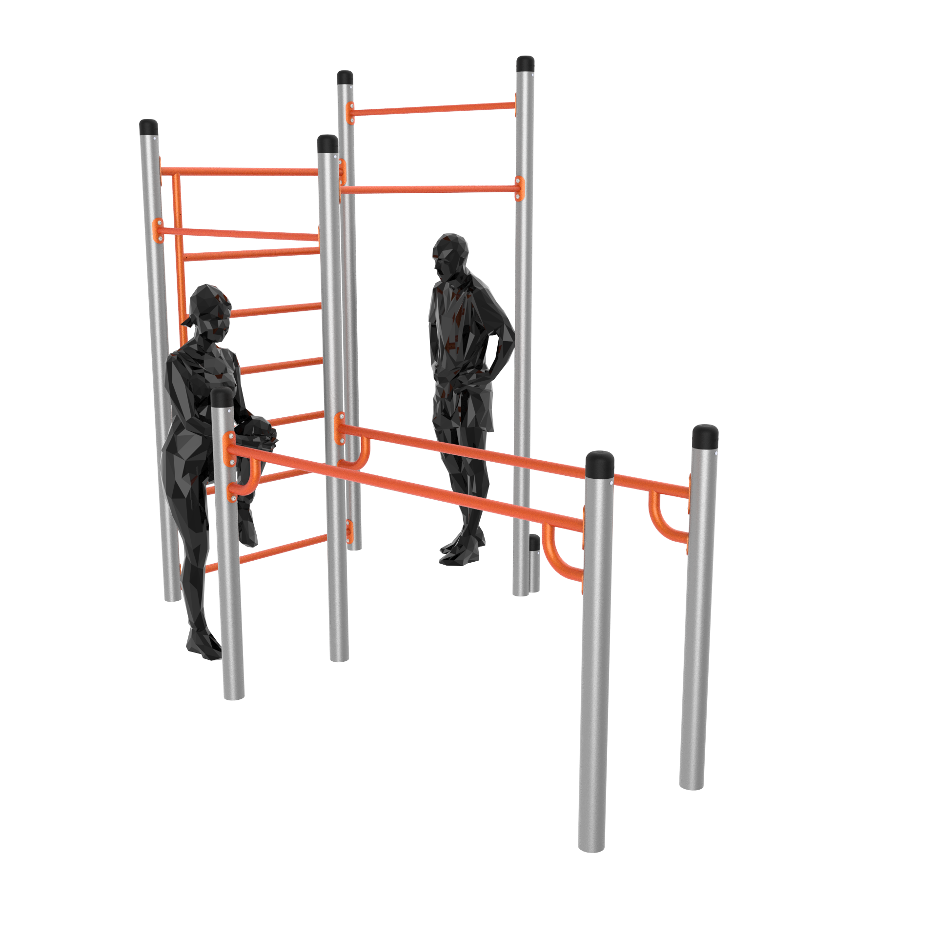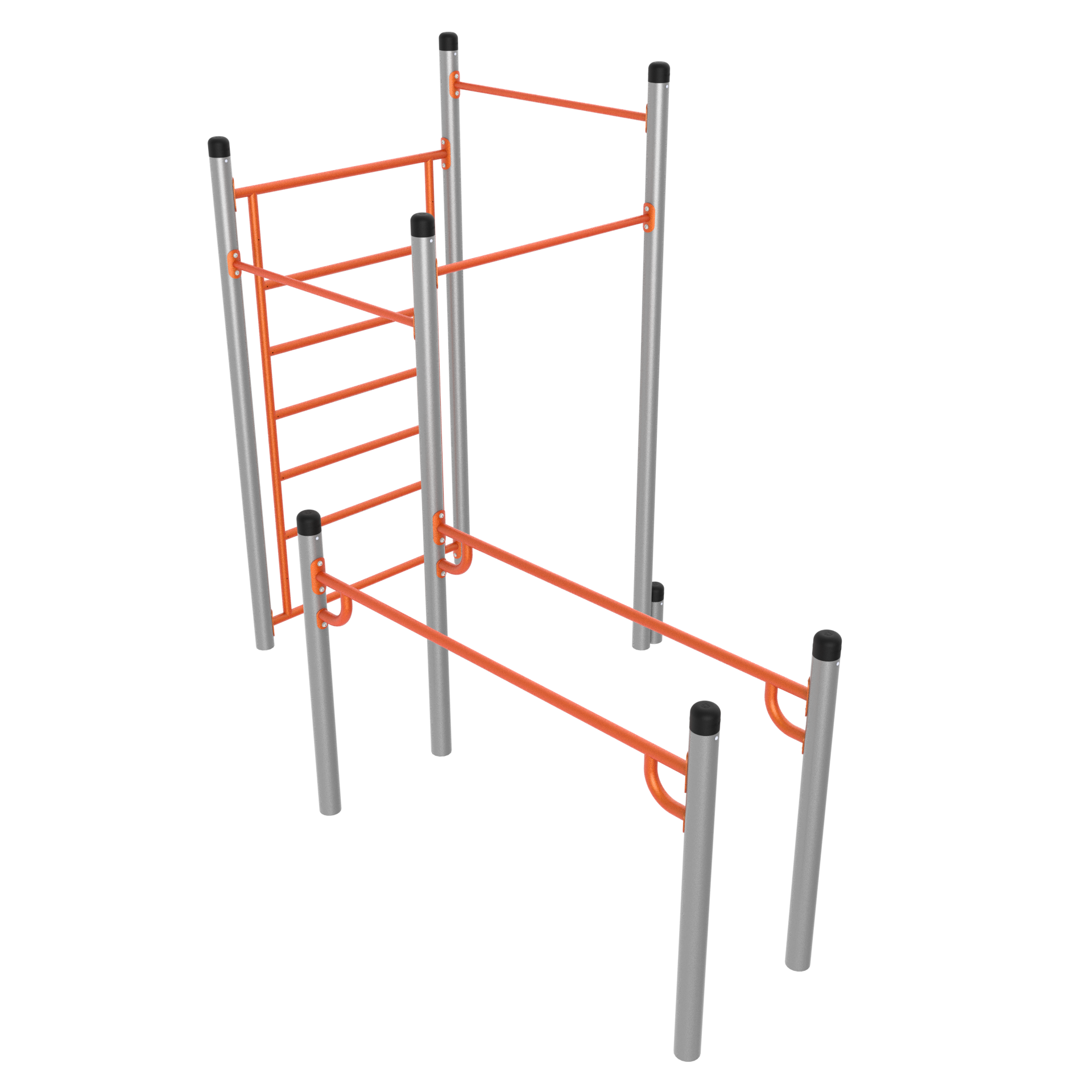 Cluster de calistenia compacto con módulos indispensables para realizar ejercicios básicos.