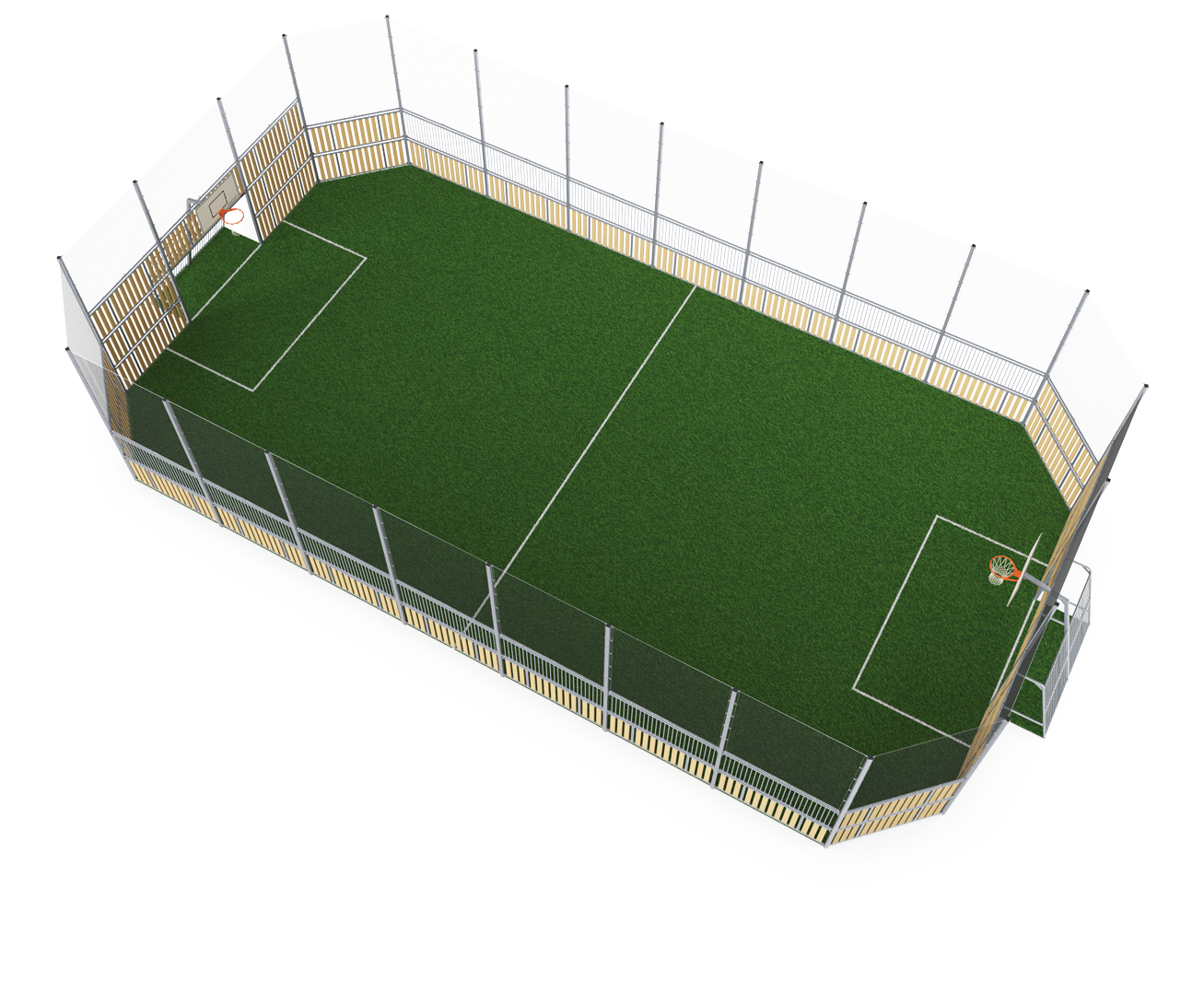El compuesto de madera y plástico (WPC) tiene la misma textura y apariencia que la madera. No necesita mantenimiento y es respetuoso con el medio ambiente. El WPC se adapta perfectamente a un entorno natural. El interior totalmente plano proporciona la mejor experiencia de rebote al jugar, esta pared plana se convierte en una parte del juego y significa que el juego puede fluir a la vez que añade otra dimensión que puede desafiar y desarrollar la visión táctica del juego de los jugadores.