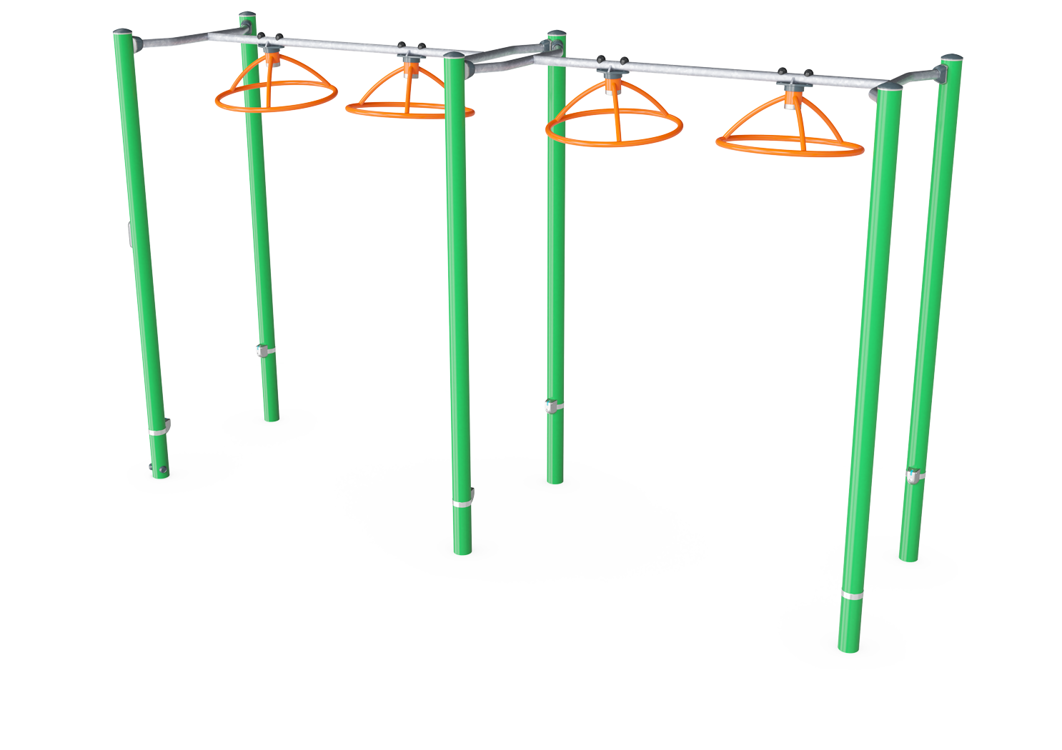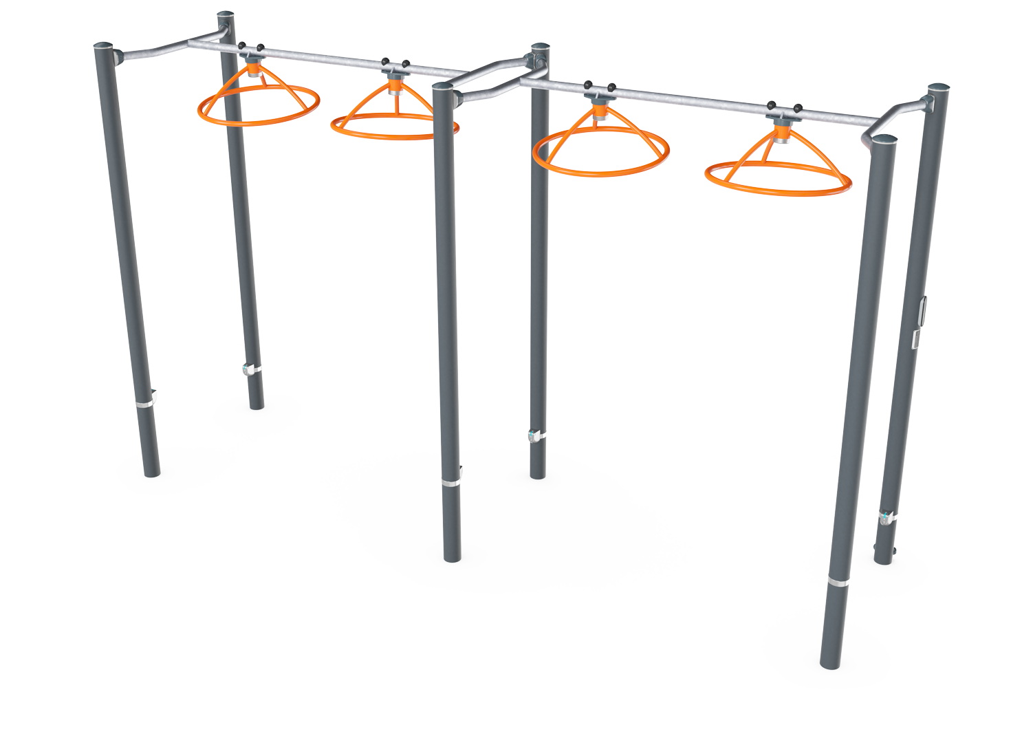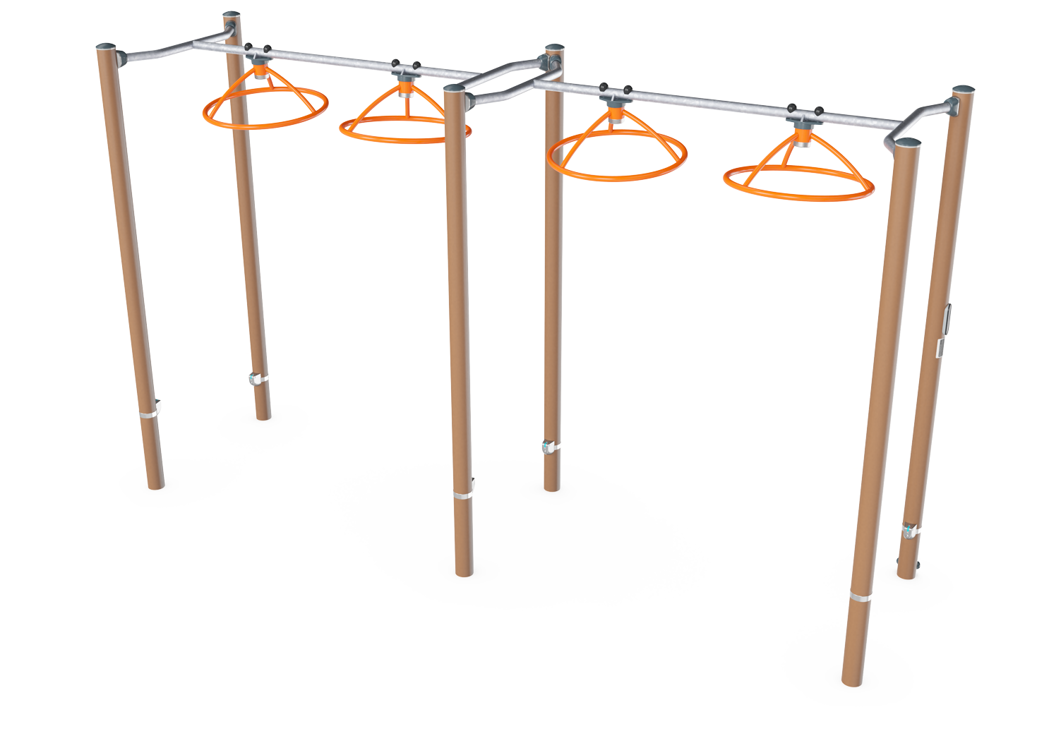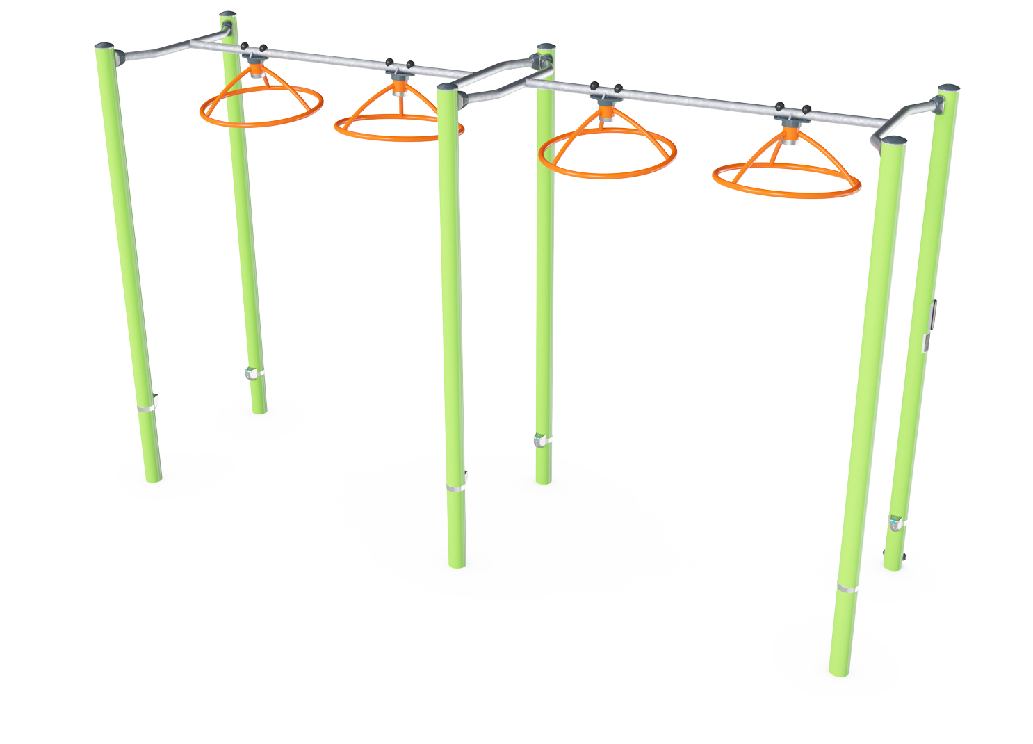 El Turbo Challenge es el elemento más dinámico y emocionante de todos los ejercicios en una carrera de obstáculos. Para realizar el ejercicio de forma adecuada son necesarias una combinación de habilidades como el ritmo y la coordinación cruzada. Esta estructura es amplia y alta para asegurar que cualquiera pueda colgarse y realizar el ejercicio correctamente. Para asegurar que todos puedan alcanzar las ruedas dinámicas, cuenta con 4 resortes de apoyo a diferentes alturas.