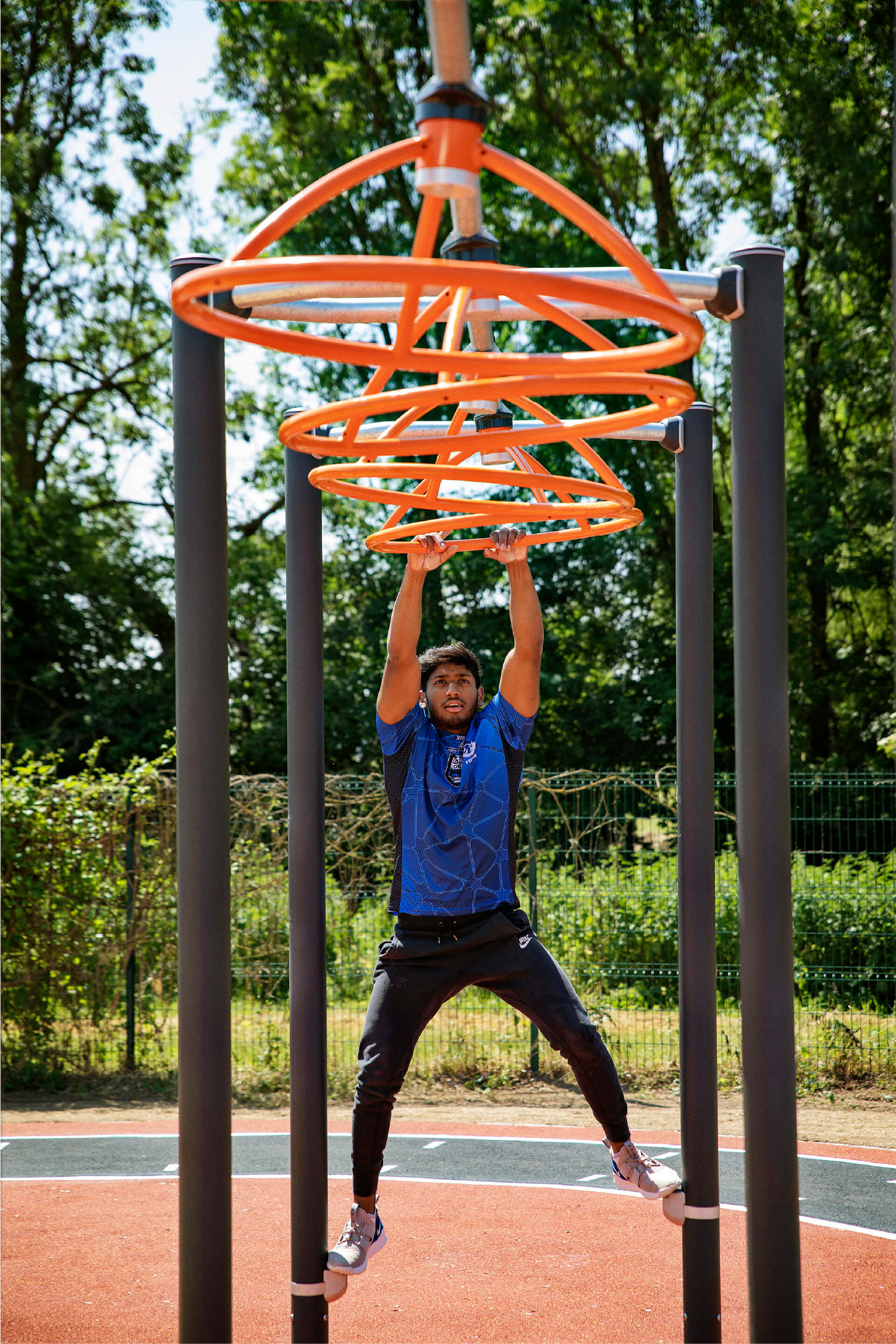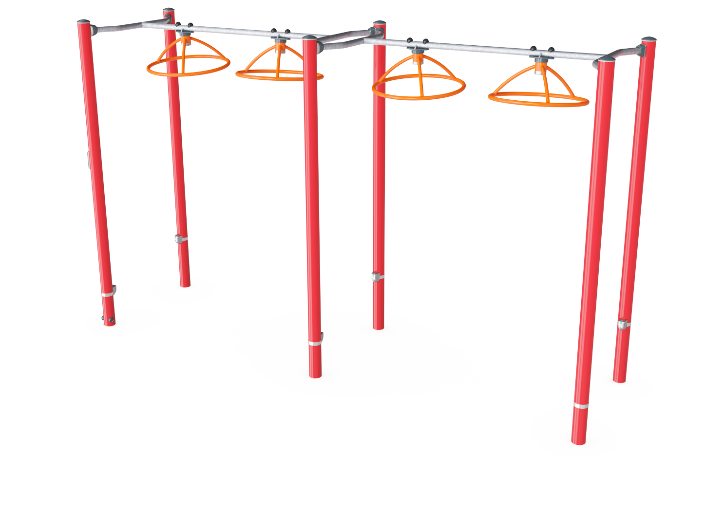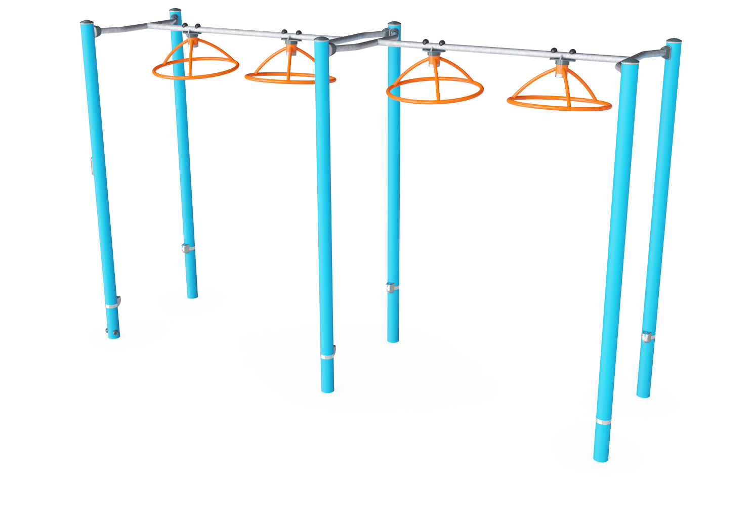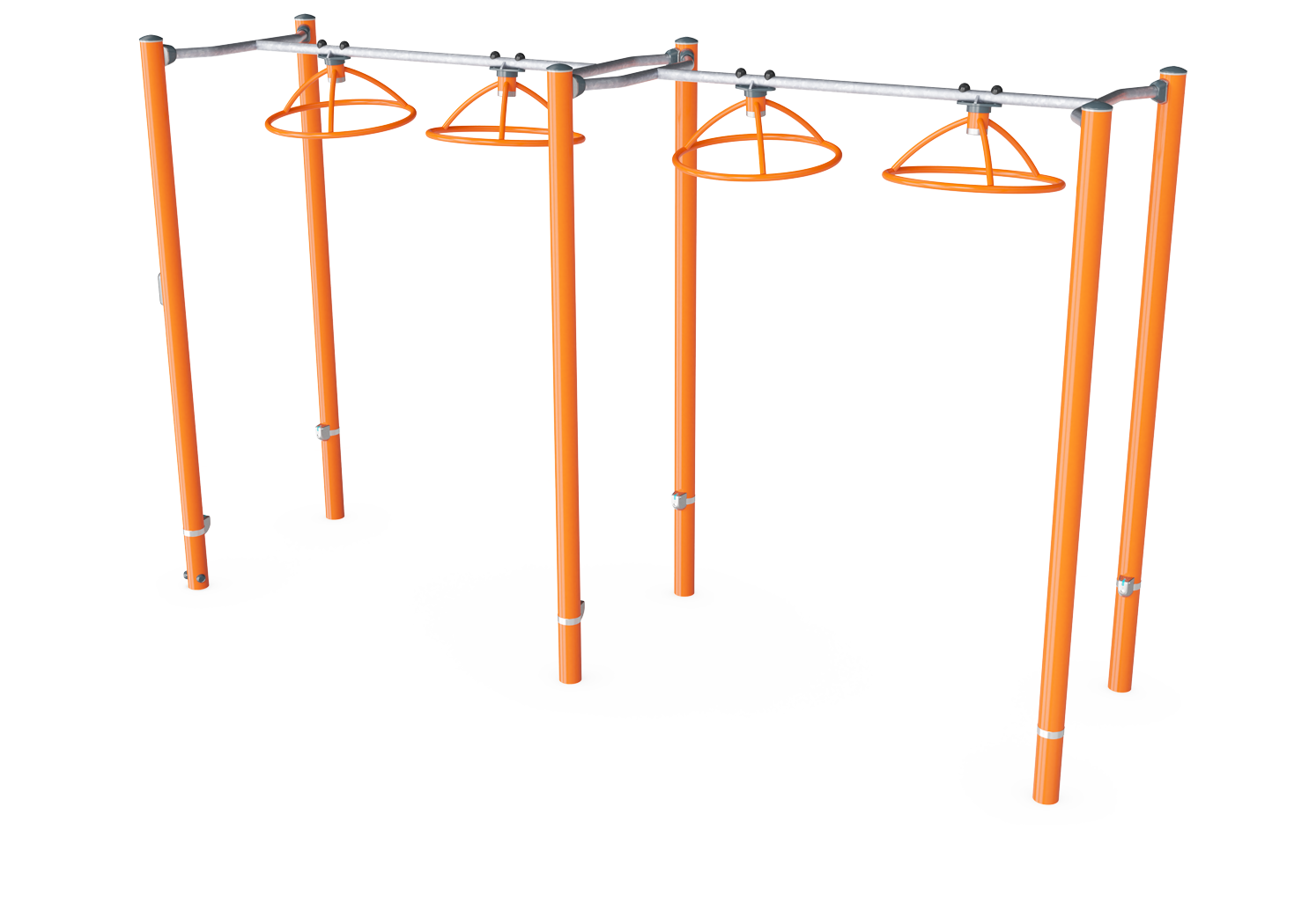 El Turbo Challenge es el elemento más dinámico y emocionante de todos los ejercicios en una carrera de obstáculos. Para realizar el ejercicio de forma adecuada son necesarias una combinación de habilidades como el ritmo y la coordinación cruzada. Esta estructura es amplia y alta para asegurar que cualquiera pueda colgarse y realizar el ejercicio correctamente. Para asegurar que todos puedan alcanzar las ruedas dinámicas, cuenta con 4 resortes de apoyo a diferentes alturas.