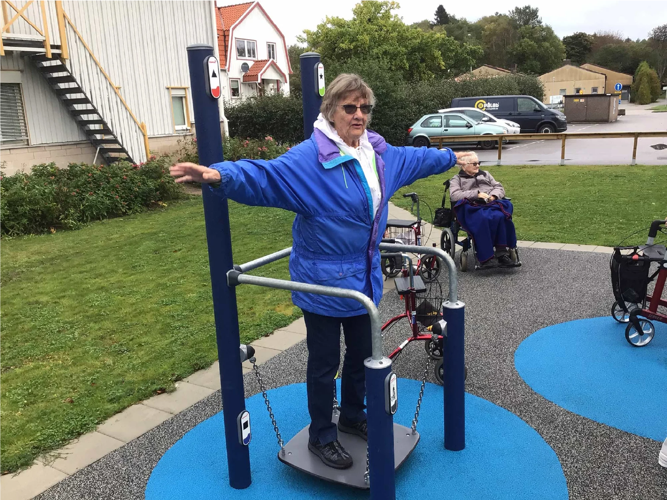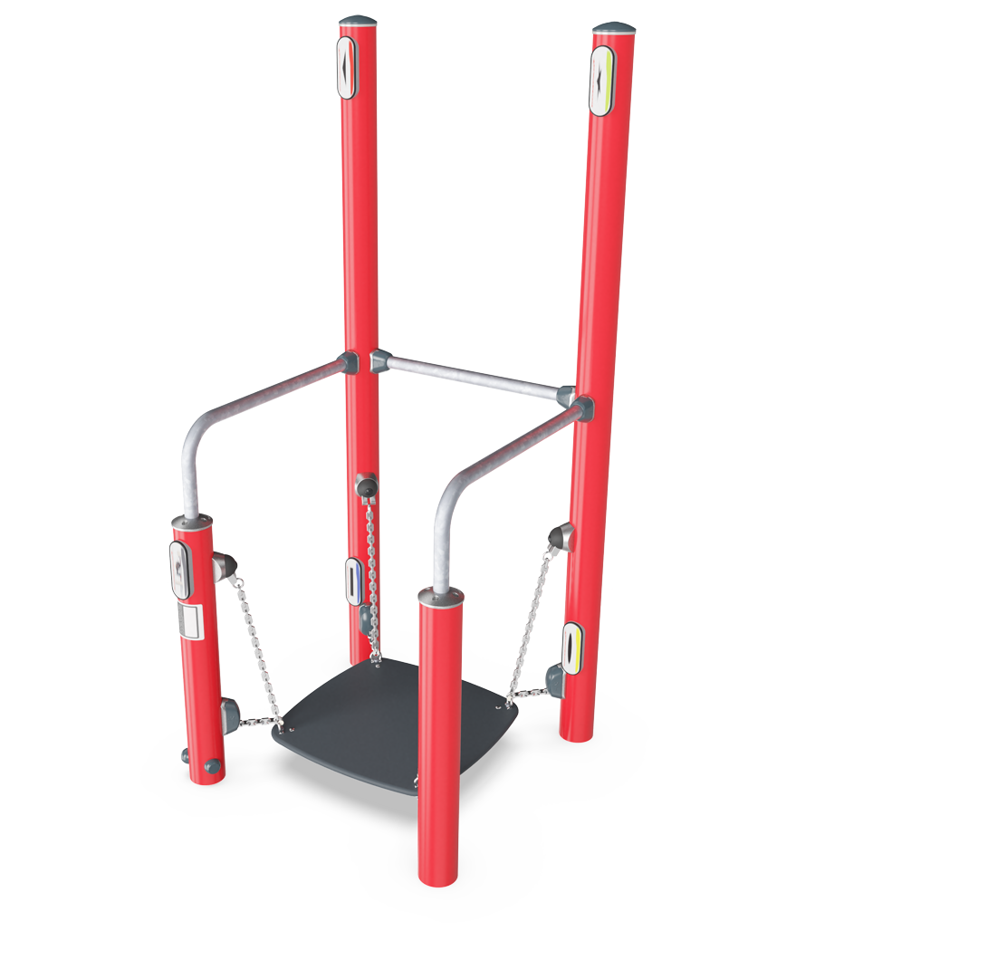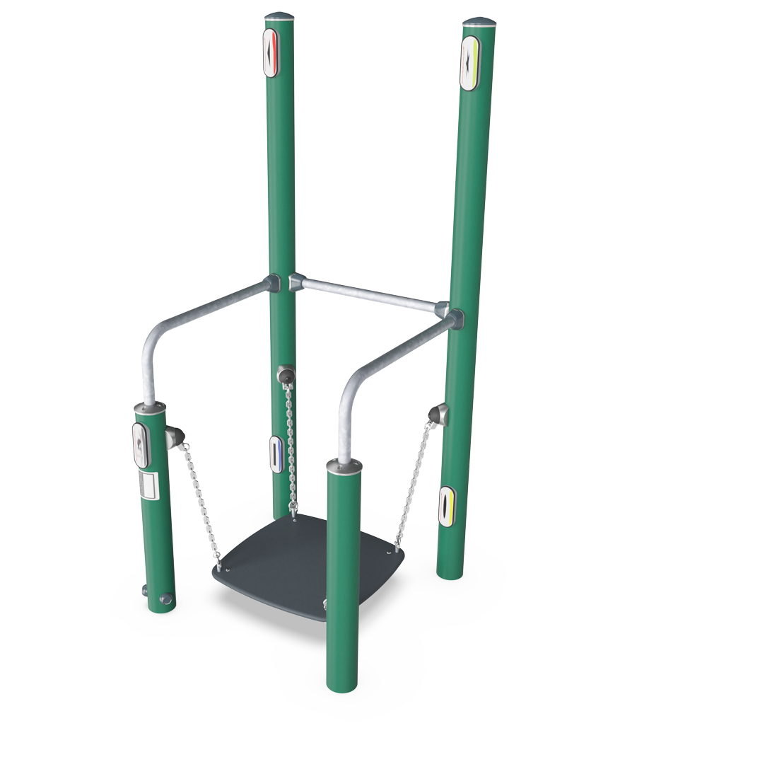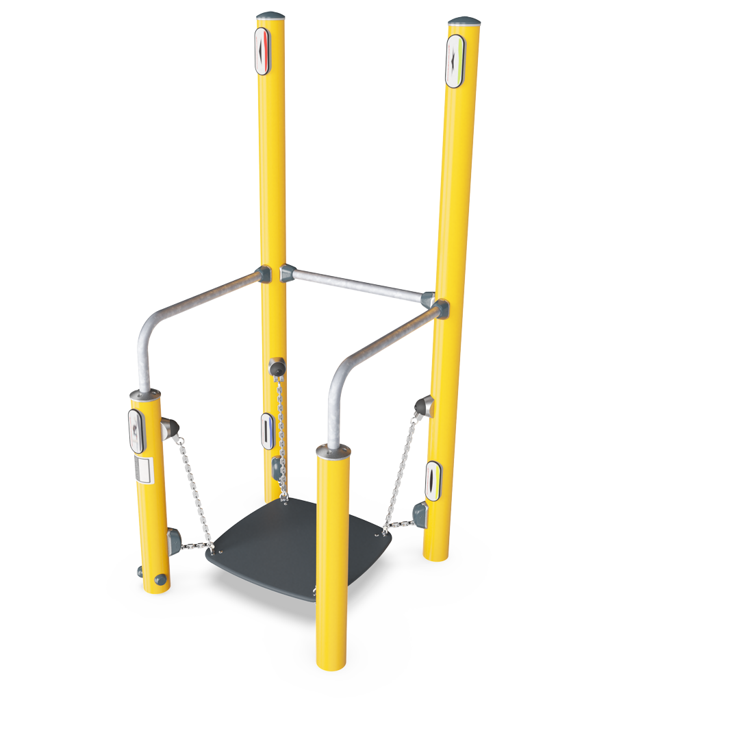 La tabla de equilibrio se asemeja a situaciones en las que el contacto con la superficie de repente se vuelve inestable. El tablero de equilibrio imita situaciones que ocurren en metros, autobuses o superficies resbaladizas. Se puede usar en uno o dos pies con o sin soporte, pero para ejercicios aún más desafiantes, se pueden usar los letreros en los postes altos. Al tocar alternativamente los diferentes símbolos en un patrón predefinido con la mano derecha e izquierda, se puede desafiar el equilibrio corporal completo, la coordinación y la cognición.
