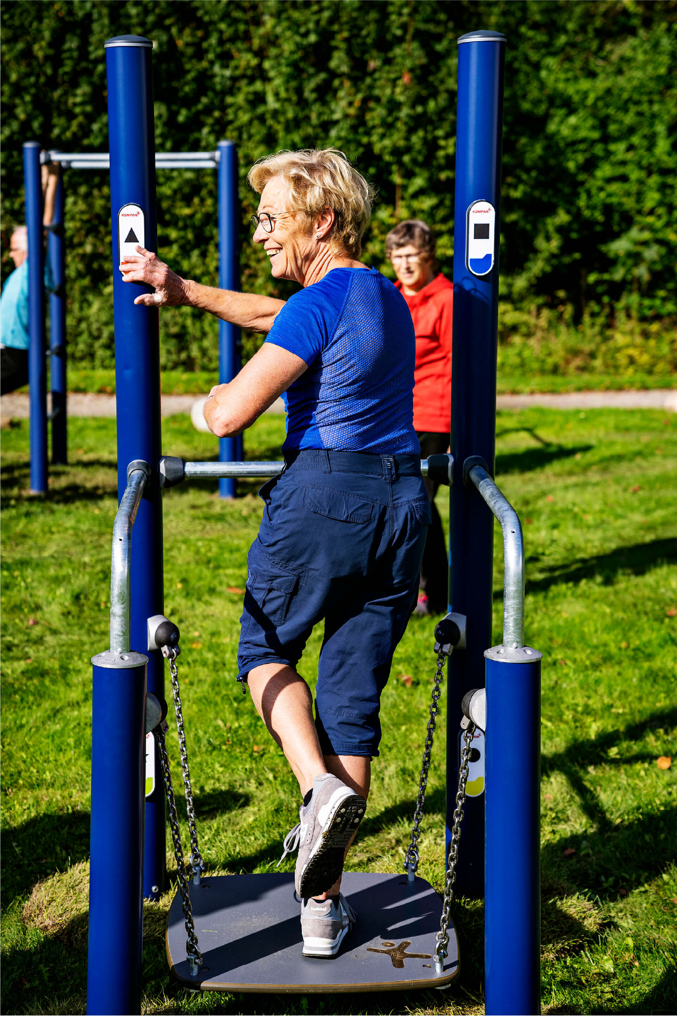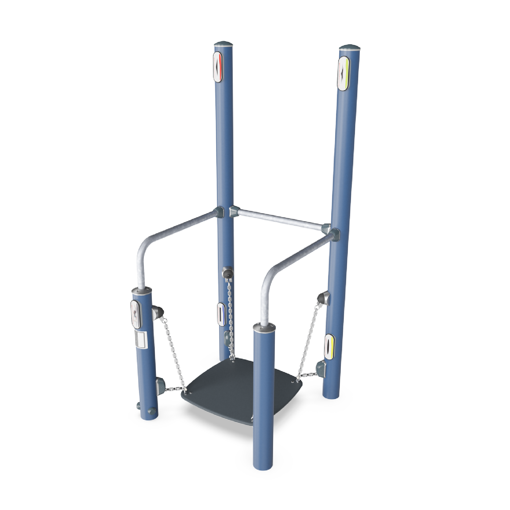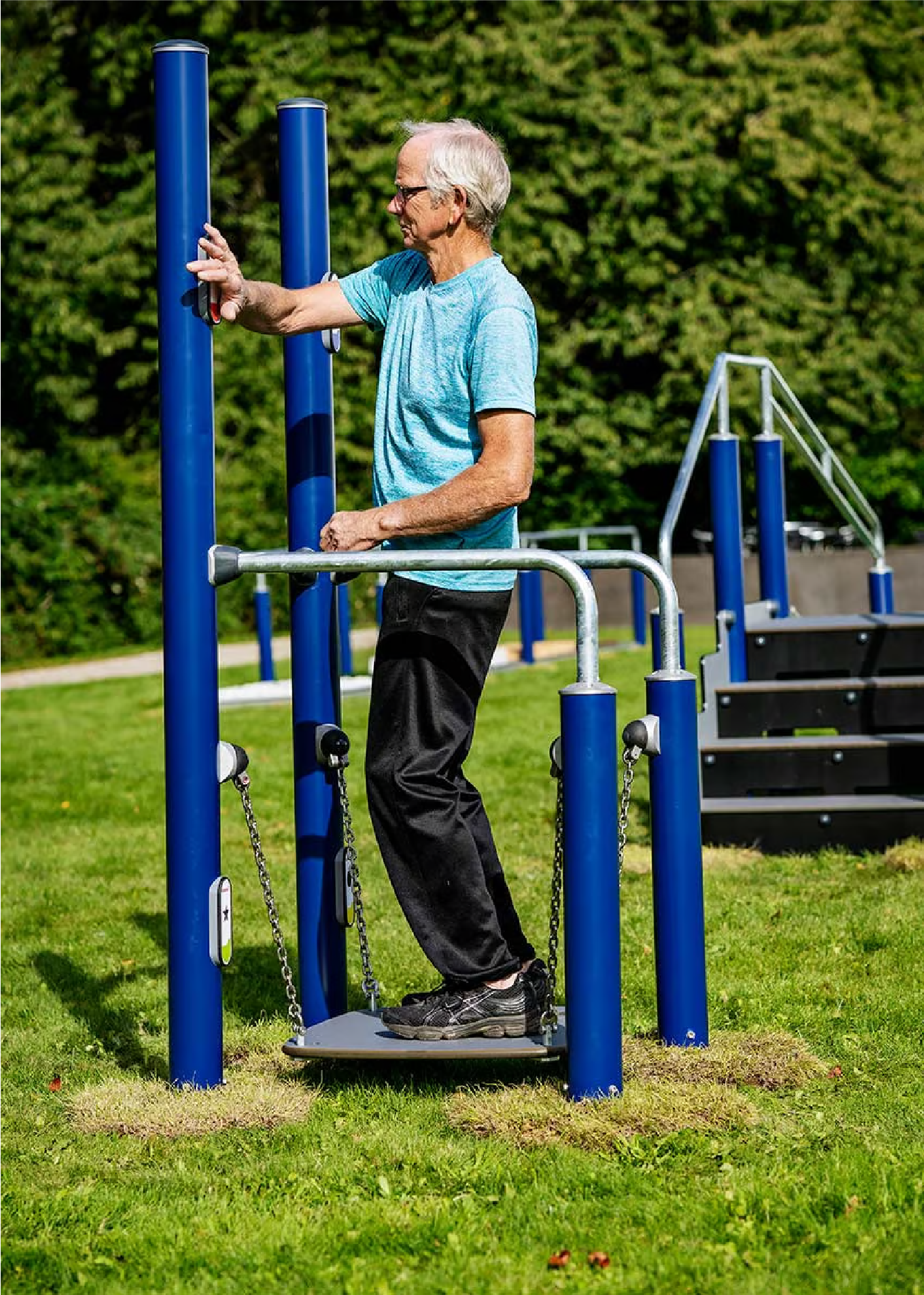La tabla de equilibrio se asemeja a situaciones en las que el contacto con la superficie de repente se vuelve inestable. El tablero de equilibrio imita situaciones que ocurren en metros, autobuses o superficies resbaladizas. Se puede usar en uno o dos pies con o sin soporte, pero para ejercicios aún más desafiantes, se pueden usar los letreros en los postes altos. Al tocar alternativamente los diferentes símbolos en un patrón predefinido con la mano derecha e izquierda, se puede desafiar el equilibrio corporal completo, la coordinación y la cognición.