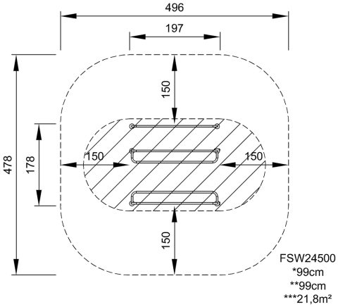 - Área de seguridad: 21.8m²