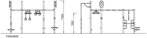 La Super Combi 3 se basa en actividades 360º en una estructura cuadrada. Cuenta con un desafío integrado en el que puedes pasar de la Monkey bar a través de las Turbo wheels y terminar en la barra en forma de serpiente. Además de esto, incluye una barra baja, un press inclinado, un tiro al blanco, cuerdas de escalar, anillas y plataformas de salto. Este paquete es un gimnasio al aire libre muy atractivo, con un diseño compacto en comparación con muchas de las actividades que incluye. Es ideal para escuelas y para la mayoría de espacios públicos.