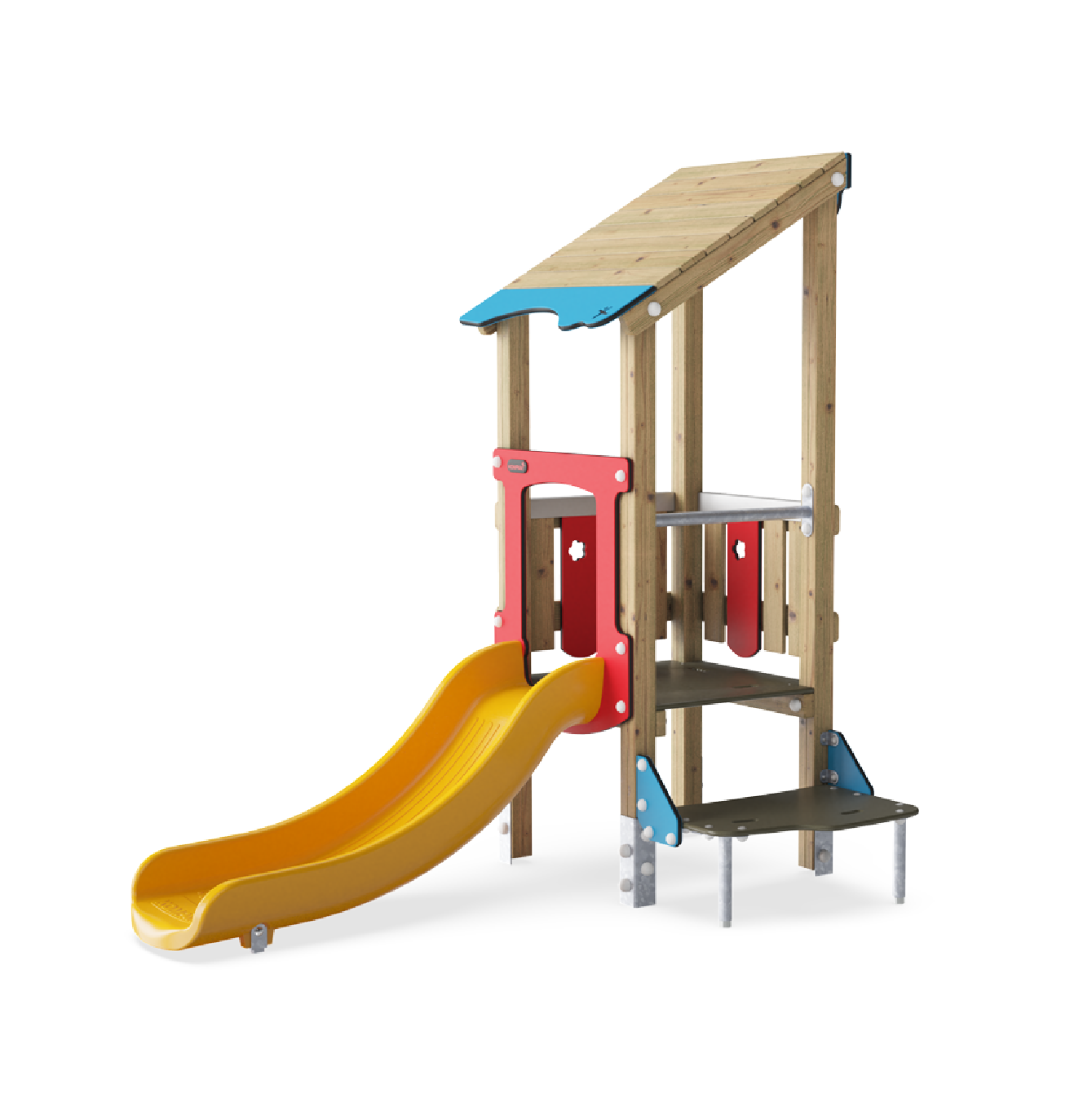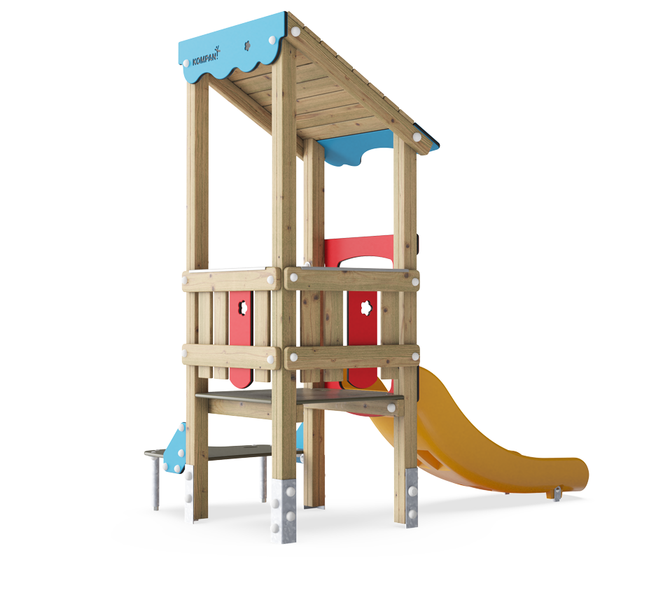 Esta torre de juego es un espacio emocionante para los niños pequeños en pleno desarrollo. La proporción y selección de las actividades están diseñadas para ofrecer una estimulación óptima en un espacio reducido: el recorrido entre la escalera ergonómica y la salida del tobogán invita al juego de todos los niños.