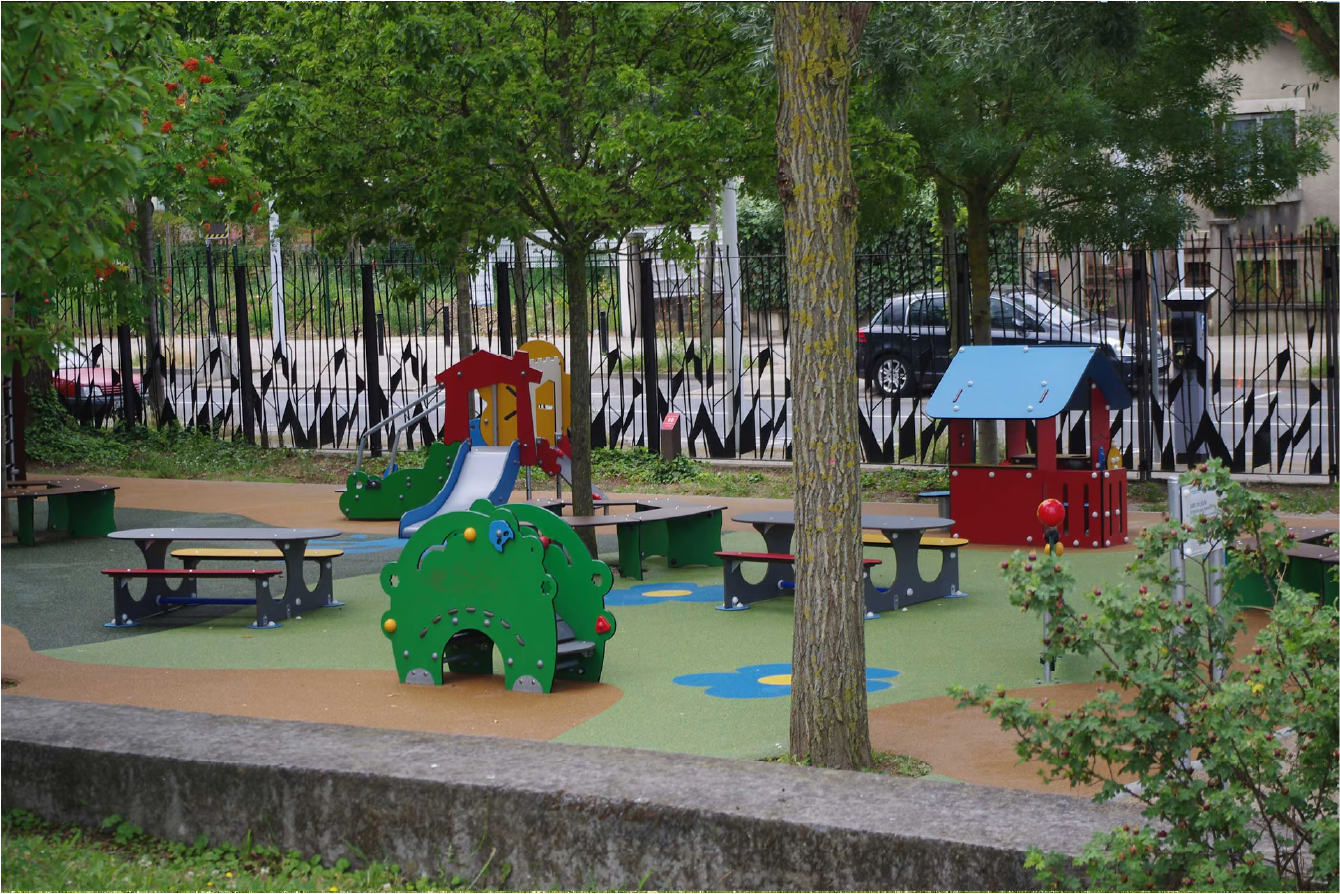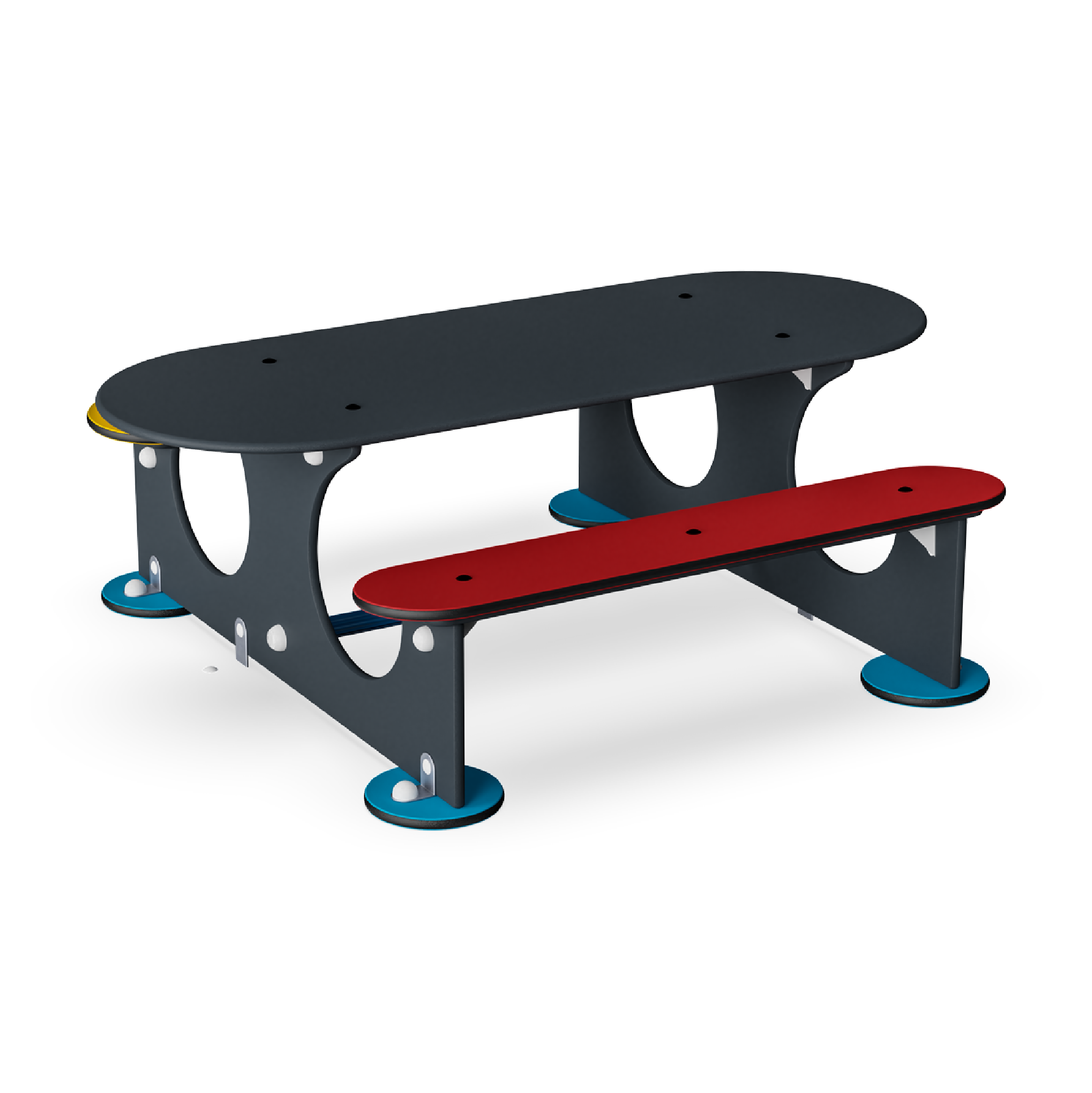 En la mesa de jardín se pueden sentar hasta seis niños a jugar con arena, pintar, charlar o comer su bocadillo.
