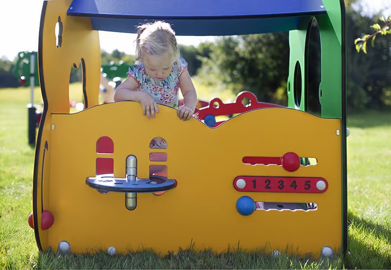 Especificaciones Esta Casita Flor del tamaño de un niño pequeño es rica en actividades que atraen y mantienen a los niños pequeños en el juego, repetidamente. Los variados elementos del juego apoyan el desarrollo socioemocional, cognitivo y creativo del niño. Las muchas aberturas pequeñas o grandes y los lados semiabiertos fomentan la cooperación en el juego desde adentro hacia afuera, aumentando el número de niños que pueden participar de una manera que tenga sentido. Hay una serie de elementos de juego manipuladores que responden a las acciones del niño: escritorio giratorio, esferas que se ejecutan en ranuras y cerradura de la puerta.