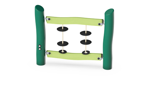 El intrigante panel de juego Stack and Turn inspira el juego en pequeños grupos e individual una y otra vez. Las dos cuerdas verticales presentan cada una tres "piedras" planas de goma que pueden girarse y apilarse, entrenando la motricidad fina y la coordinación en los preescolares. Los niños dedican tiempo a averiguar la funcionalidad, cómo girar la piedra para levantarla y cómo girarla para que permanezca en su pila. También descubren cómo secuenciar las acciones para conseguir apilarlas.