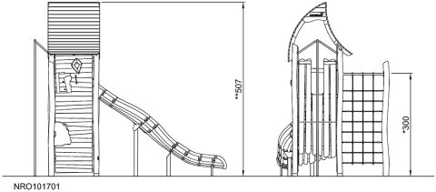 La Torre de la Bruja ofrece una divertida y variada selección de trepadas escalonadas y puntos de encuentro que motivarán a los niños a jugar durante mucho tiempo. La torre se puede escalar de distintas maneras: por la pared vertical de escalada con ventanas, las plataformas internas en zigzag o la alta red. Escalar entrena los principales grupos musculares y la coordinación cruzada, lo que a su vez estimula la percepción intermodal, necesaria para la lectura. La alta red representa un desafío en la escalada.