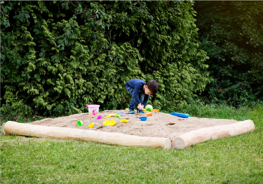 Los troncos de robinia pueden usarse para diseñar cajones de arena de diferentes tamaños y formas o como bordes para las superficies. Los troncos están disponibles como madera de robinia con certificación FSC® (FSC® C004450) bajo petición. La arena es eternamente atractiva, con su combinación de carácter sólido y líquido. Esto hace que los niños se sumerjan en el juego durante largos periodos de tiempo. La arena invita a jugar en profundidad. El carácter cambiante de la arena cuando está seca y cuando está mojada fascina a los niños. Además, entrena su sentido del tacto y su motricidad física. El cajón de arena 8 entrena la comprensión del carácter material y de los fenómenos de la naturaleza: que la arena al sol está caliente, que la arena bajo la lluvia es moldeable. Que la arena al sol es seca y ligera, y que la arena mojada es fría y pesada. Se trata de conocimientos importantes que contribuyen al conjunto de habilidades vitales del niño que le ayudan a comprender el mundo que le rodea.