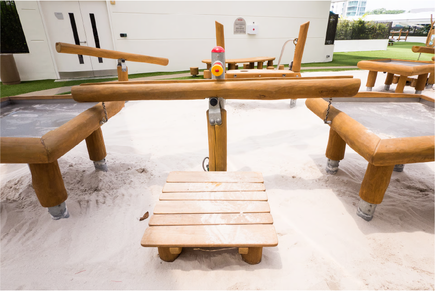 La Tarima de agua facilita el acceso al grifo de agua o a las palanganas para los usuarios más jóvenes o más pequeños. Además, la tarima del grifo es un buen punto de descanso o de encuentro para los niños que juegan con los objetos de arena y agua. Añadir puntos de descanso y podios a los parques infantiles, suele añadir la cola necesaria para atender a los encuentros e intercambios. También facilita el uso para los más pequeños.