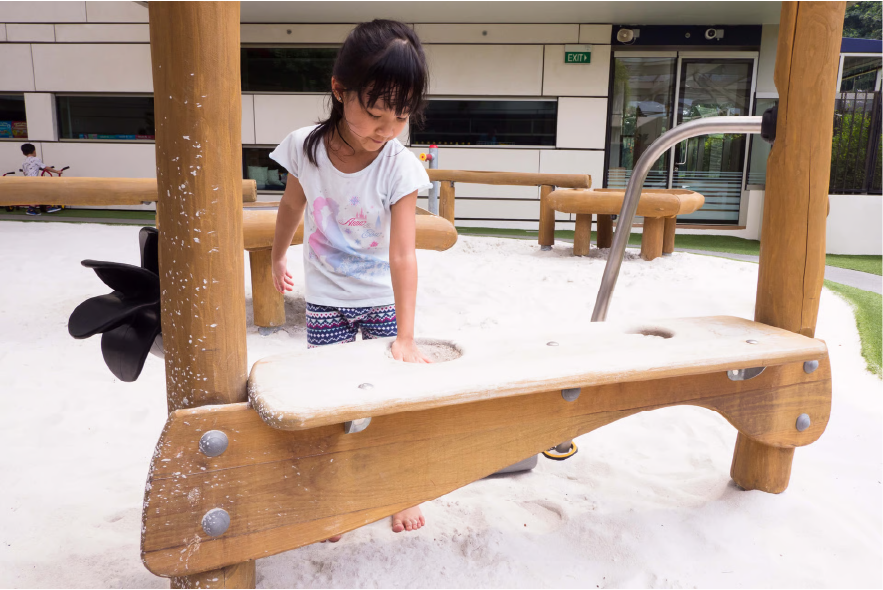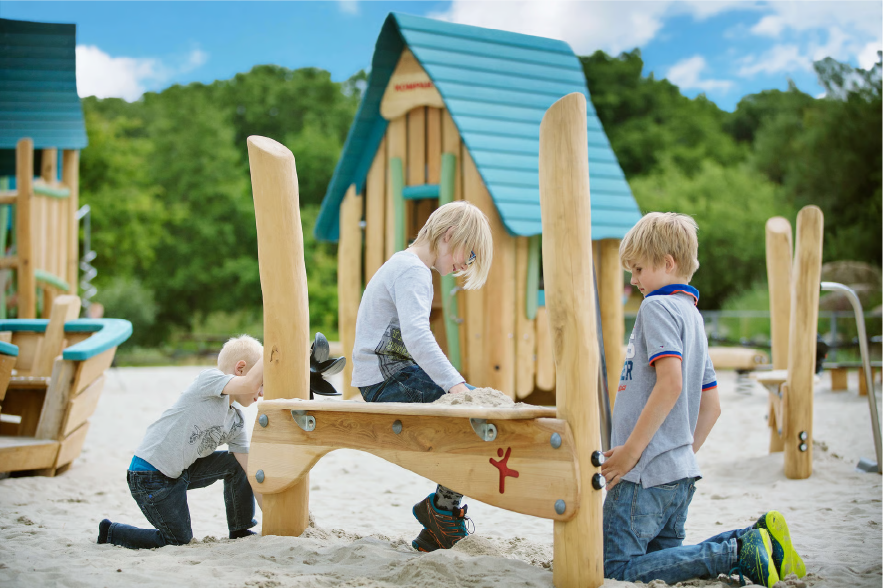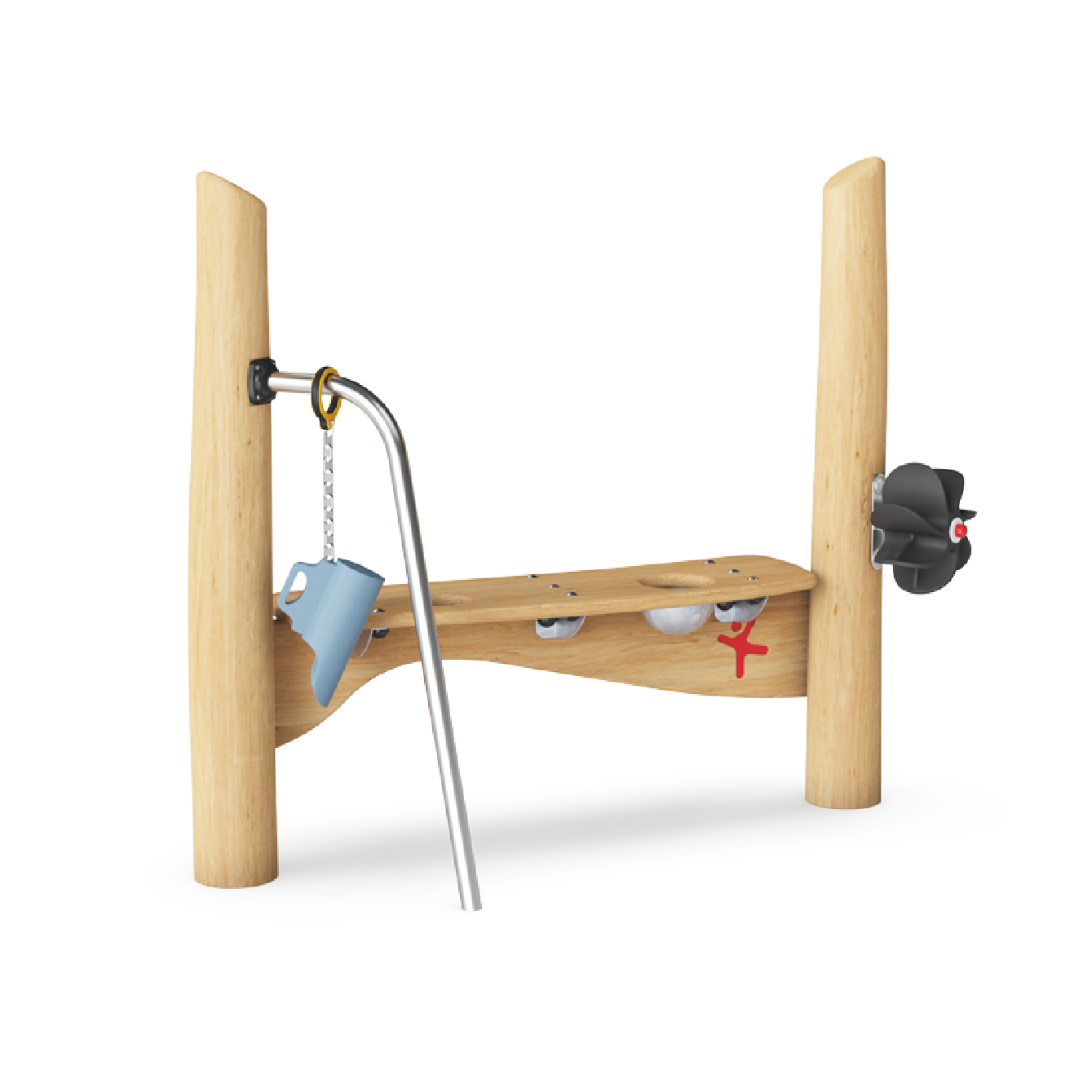 Esta Mesa de manipulación de Arena ofrece horas de juego de exploración con su noria de arena, la pala y los pequeños soportes de arena en el tablero. Todos estos elementos, con sus variadas texturas y funcionalidades, proporcionan una gran estimulación táctil de la motricidad precisa. También proporcionan una comprensión de la causa y el efecto: cuando pongo arena sobre la noria, esta gira. Esto contribuye a las habilidades de pensamiento y al desarrollo cognitivo general. La unidad de juego con arena puede servir para que grupos más pequeños de niños proporcionen, clasifiquen o vendan los materiales que han encontrado o creado en el patio. Estos escenarios de juego de exploración y dramatización favorecen las habilidades de negociación y comunicación de los niños, así como sus habilidades lingüísticas.