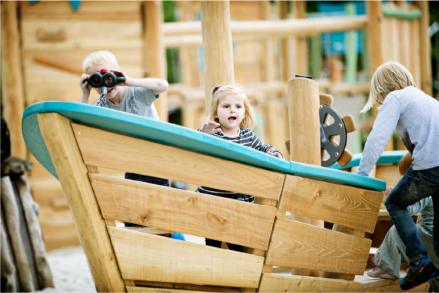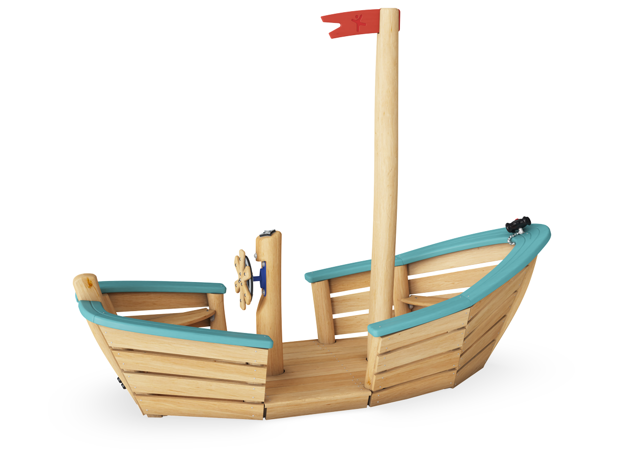 Este pequeño Barco velero es un maravilloso escenario para que los niños dejen fluir su imaginación. Su forma inspira horas de juego, uniendo a los niños en torno a un divertido juego de roles, donde el capitán y su tripulación navegan en busca de tierras desconocidas. El asiento en la parte trasera, el timón giratorio y los prismáticos son elementos que ayudan a que el juego sea más realista y divertido para los niños durante la aventura. Estos elementos, además de ofrecer gran variedad de experiencias táctiles y sensoriales, facilitan el juego de representación. Las actividades teatrales y el juego de rol, favorece que los pequeños negocien entre ellos, respeten los turnos y afronten experiencias de vida poco conocidas aún. Crean argumentos, deciden cómo representar historias, y sus finales, una libertad que les fascina.
