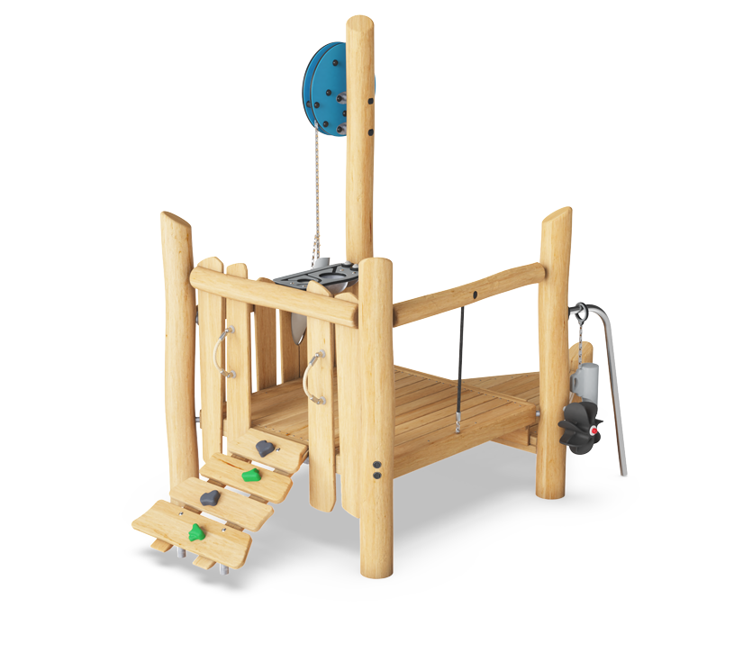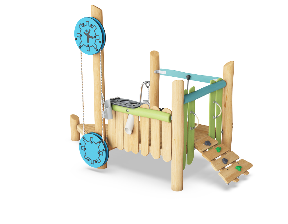 El Oasis Sandworks es una unidad de juego con arena sumamente atractiva que mantendrá a los niños entretenidos durante horas. La polea se acciona de forma vertical tirando de una cadena: la pala de arena sube o baja al tirar de ella y se mantiene en su sitio al soltarla. Además de ofrecer un juego fascinante, este mecanismo estimula el pensamiento lógico de los niños. La cooperación y la negociación necesarias para transportar la arena hacia la mesa desarrollan habilidades sociales y emocionales. El tamiz de arena y el tubo que la conduce hacia fuera ayudan a los más pequeños a comprender la permanencia del objeto, es decir, que algo sigue existiendo aunque no lo vean. La rueda de arena y la pala ofrecen un rincón más tranquilo para el juego.