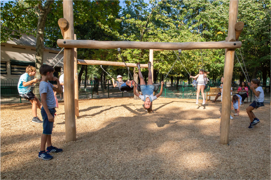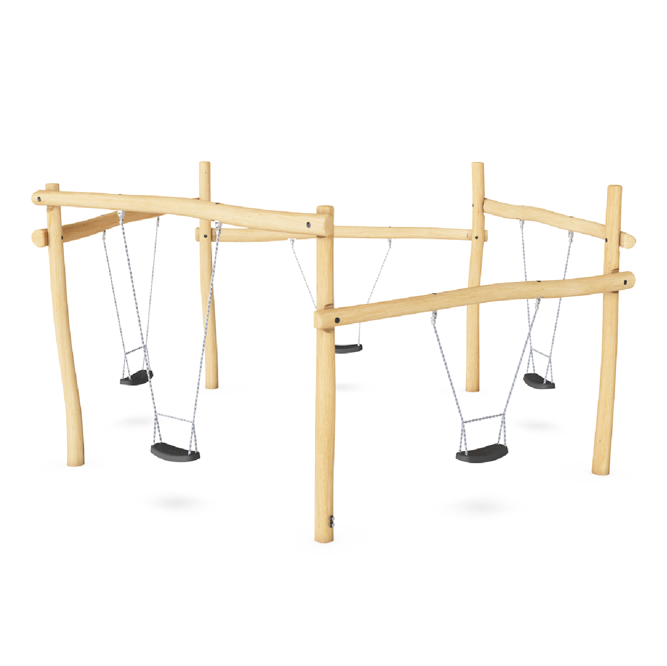 El pentacolumpio es uno de los favoritos del parque infantil, ya que combina la emoción física con la social y ofrece a los niños mucha diversión. El pentacolumpio tiene diferentes alturas de asiento para que niños de diferentes edades y tamaños de grupo puedan columpiarse juntos. Columpiarse, además de ser muy divertido, entrena el equilibrio y la coordinación de los niños, así como su conciencia espacial.