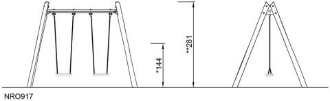 De todas las actividades de juego, columpiarse es una de las favoritas, a los niños les encanta, ya que se puede hacer individualmente o en compañía. Este juego de columpios apoya la alegría de hacer lo mismo al mismo tiempo, presentando dos asientos de columpio similares. Los asientos tienen una forma ligeramente curva en el centro, para facilitar la posición segura del asiento a una amplia franja de edad.