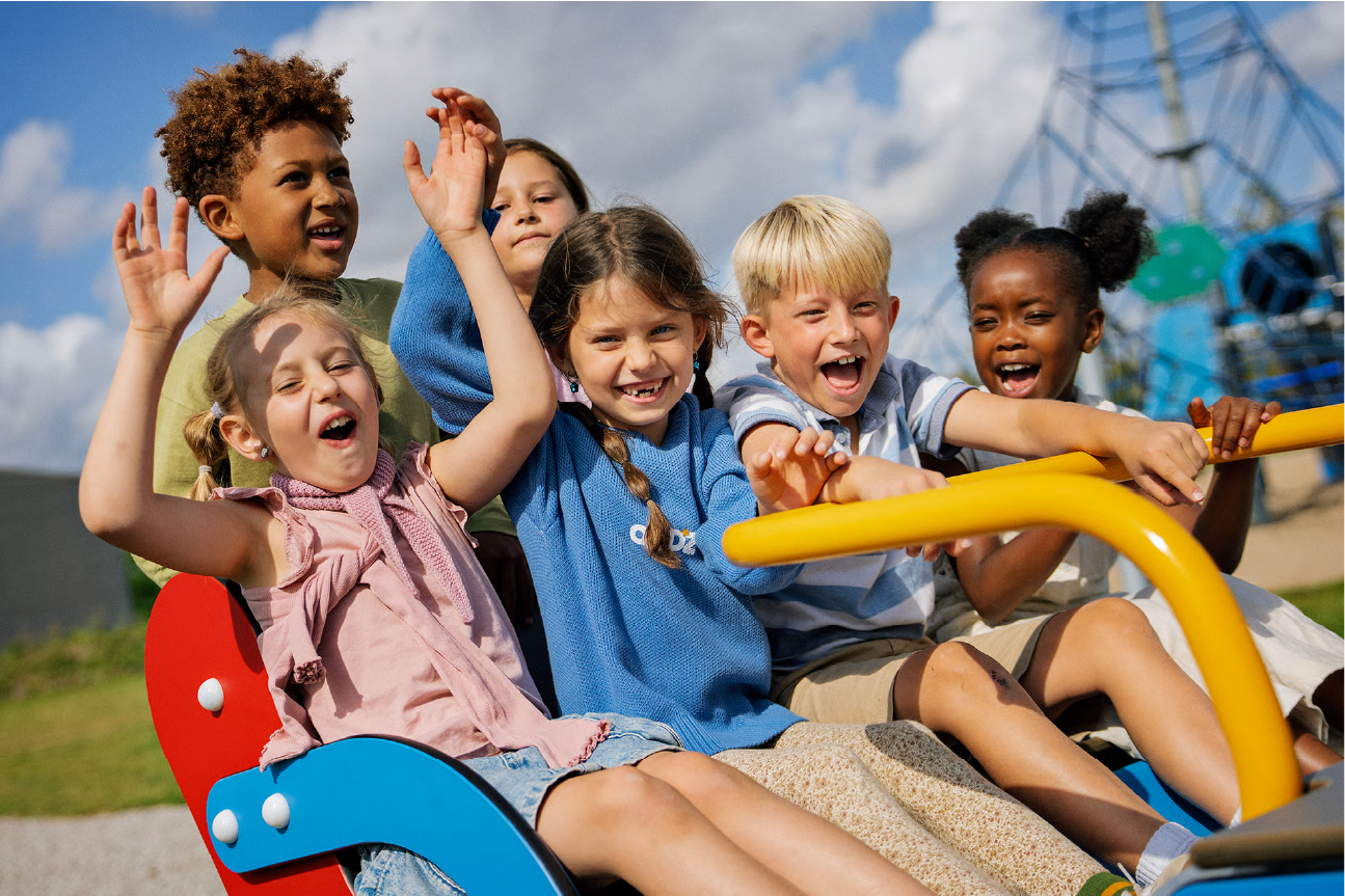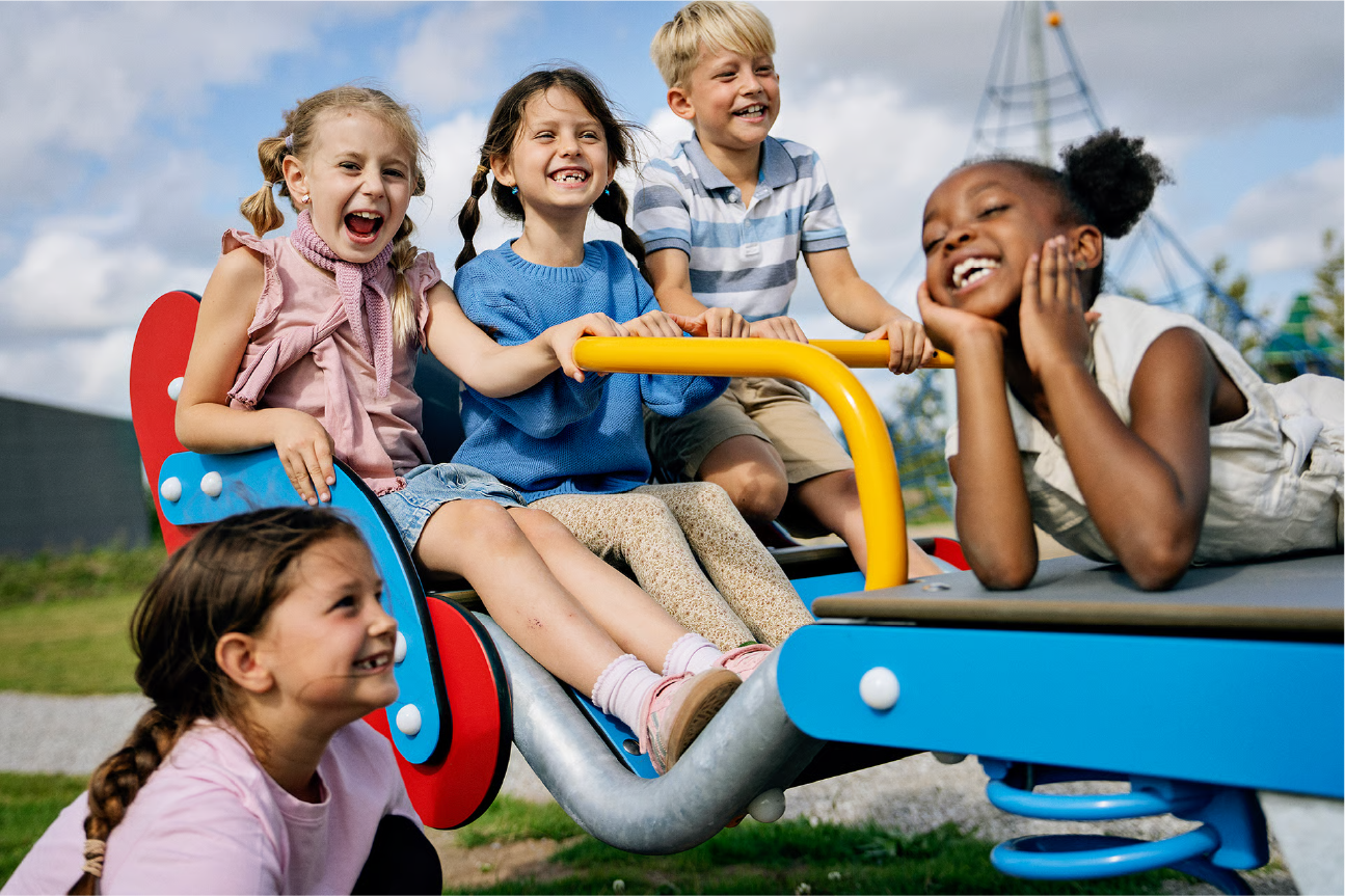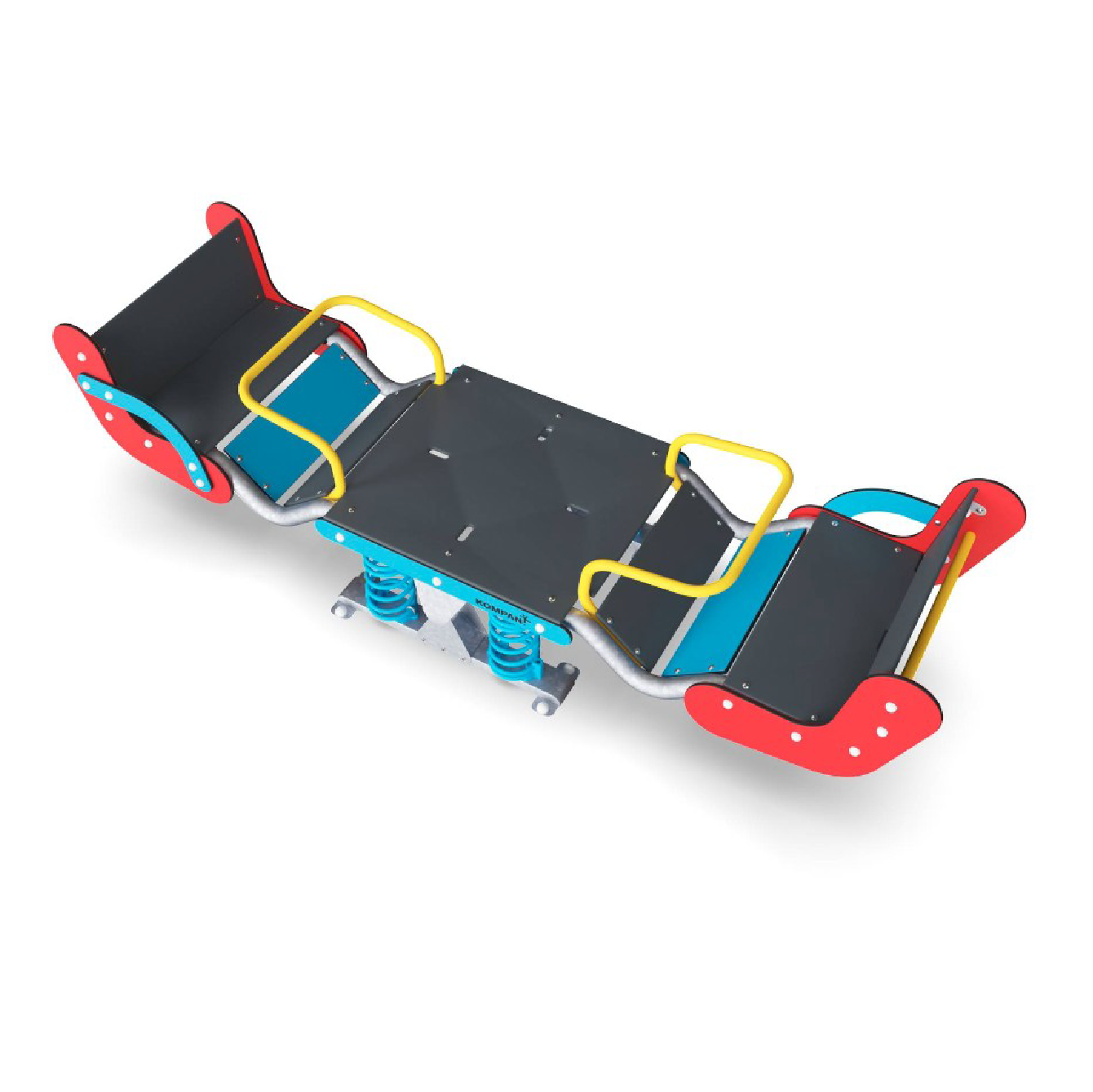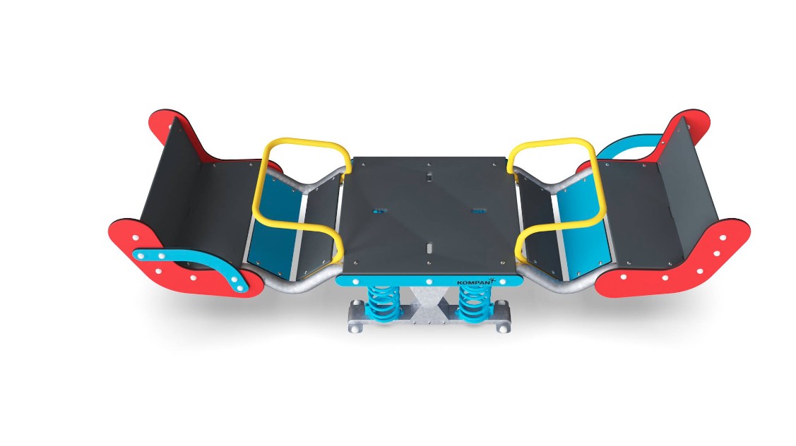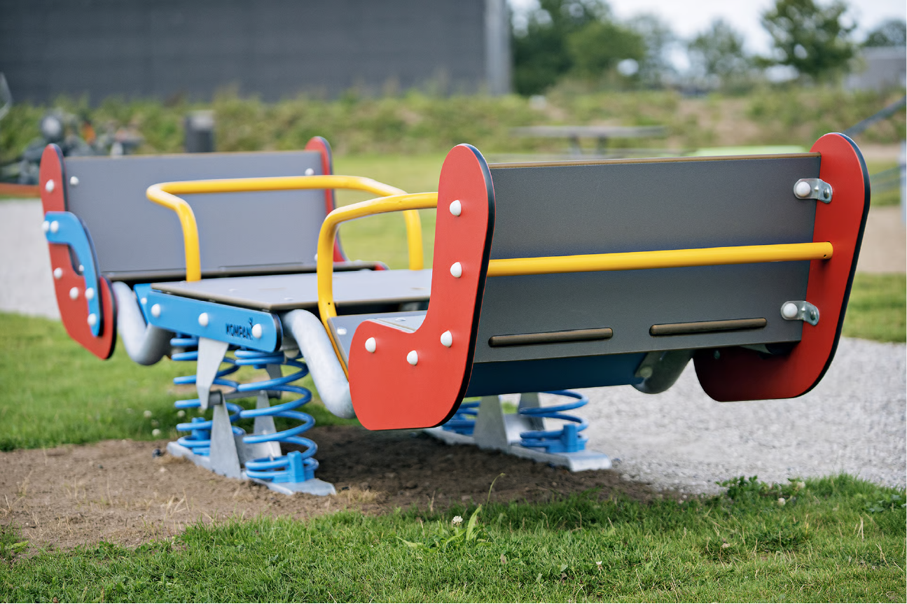 Montarse en el balancín en grupos grandes es una actividad muy atractiva que invita a los niños a jugar una y otra vez. Los contrastes de color del balancín, con sus mangos amarillos, son útiles para quienes tienen dificultades visuales. La plataforma y los asientos amplios del Balancín Múltiple Inclusivo, junto con el respaldo y el soporte para los pies, permiten que niños de todas las habilidades puedan participar en el juego. Los laterales abiertos facilitan el acceso a quienes tienen problemas de movilidad, y las barras laterales ayudan a mantener la posición sentada. Los asientos anchos permiten que los cuidadores acompañen y apoyen el juego. El asa en la parte trasera de los asientos invita a los niños que no se sienten cómodos o no pueden usar la plataforma a unirse al juego y a la interacción social.