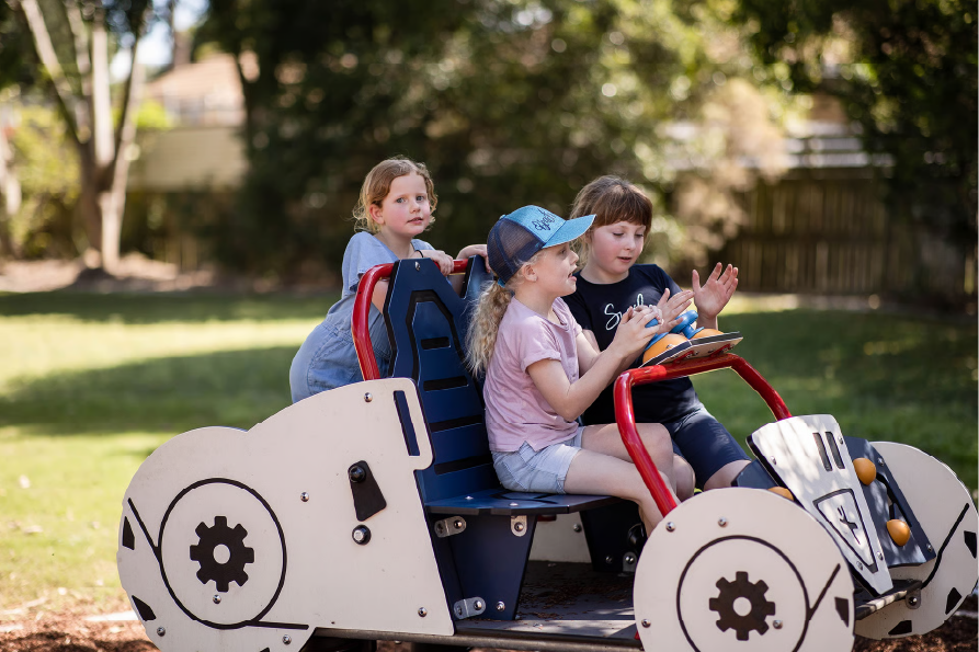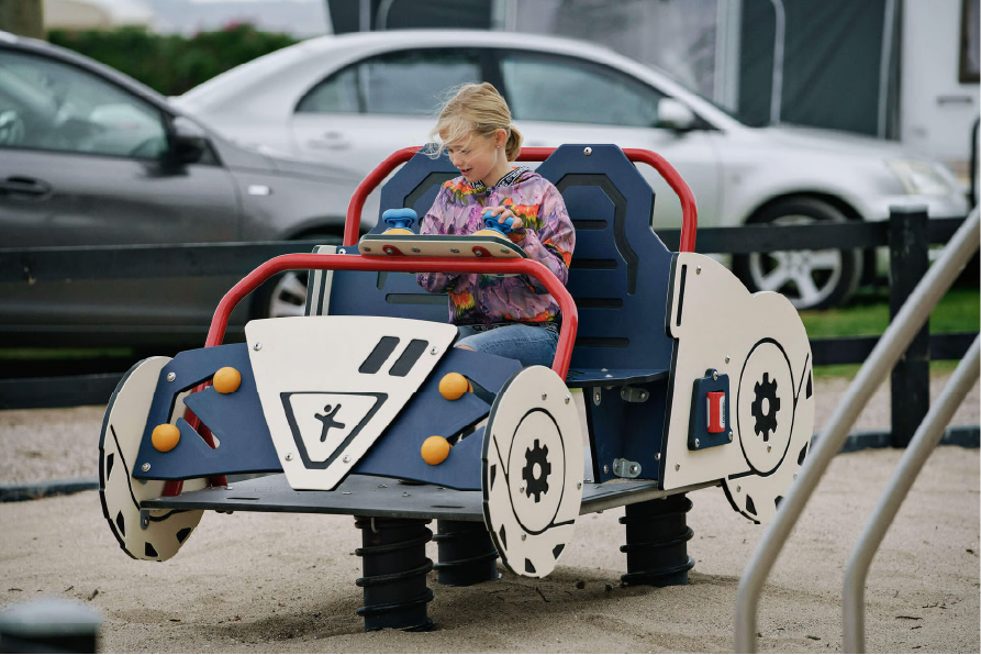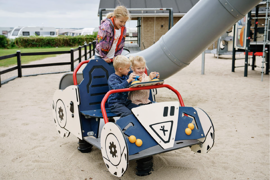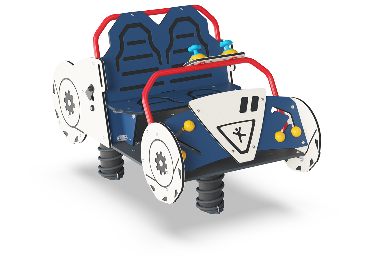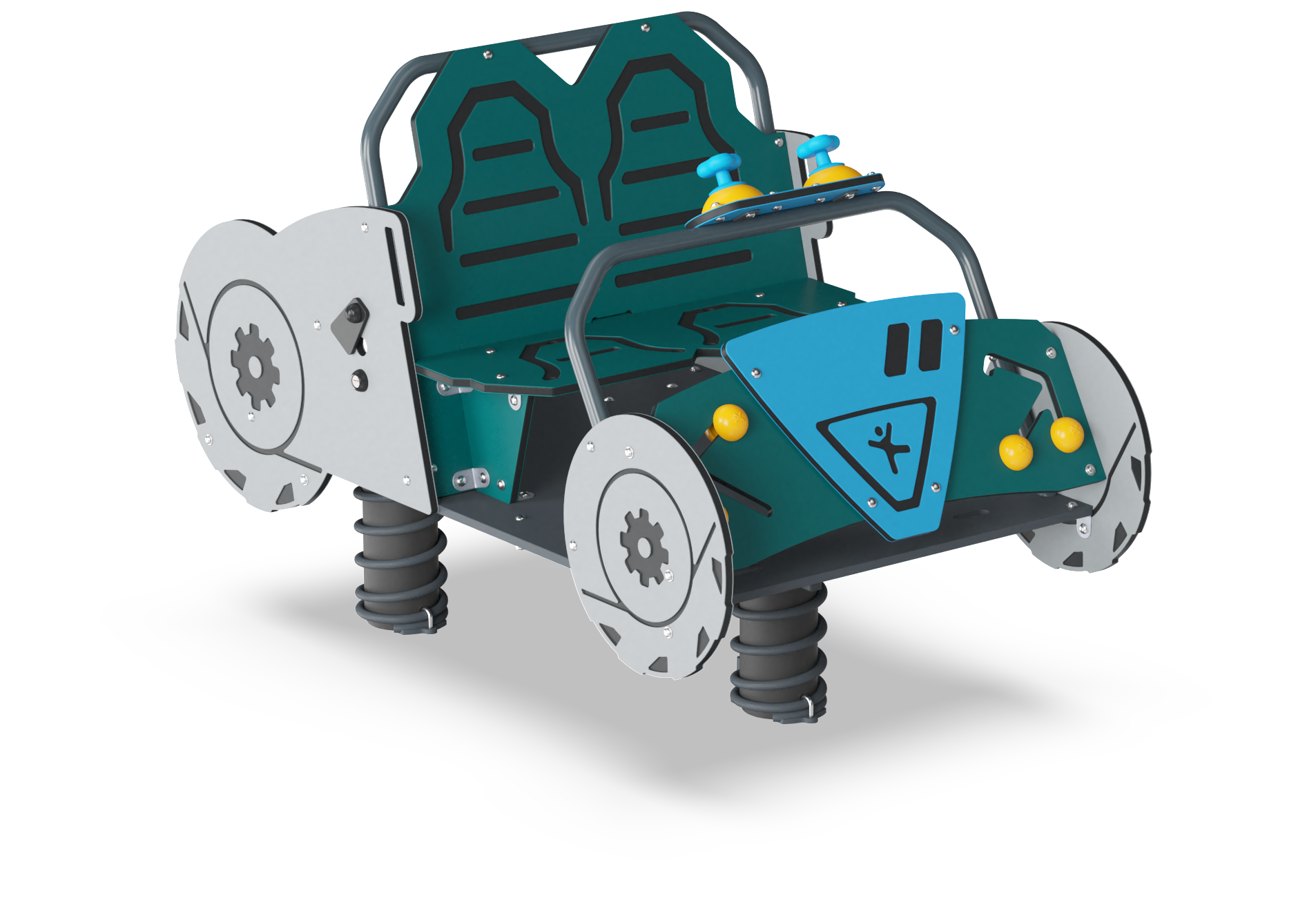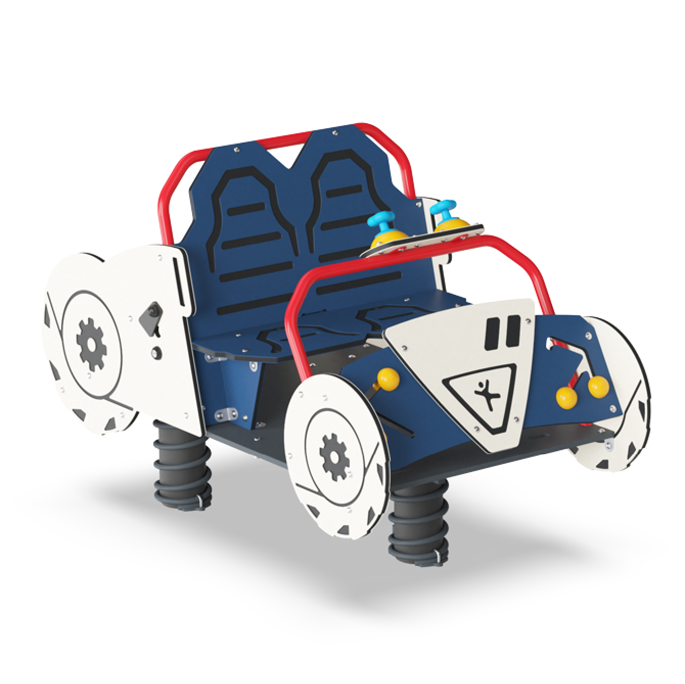 Los movimientos de balanceo del Mars Rover simulan un viaje accidentado por la superficie de la luna. El tema del espacio y los colores inspiran el juego dramático. Los cambios de marcha manipulables y las esferas de juego aumentan la duración del juego. El Mars Rover se balancea sobre tres sólidos muelles y refleja los movimientos de los niños. Los asientos son amplios, con dos en el asiento del conductor y otros en la parte trasera, lo que favorece el juego social y la negociación de turnos. El balanceo con los amigos es muy atractivo e inspirará a los niños a volver continuamente.