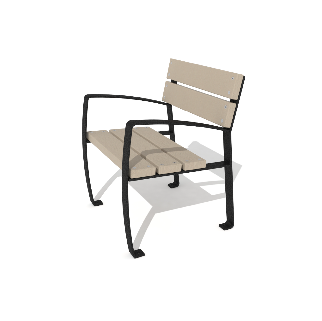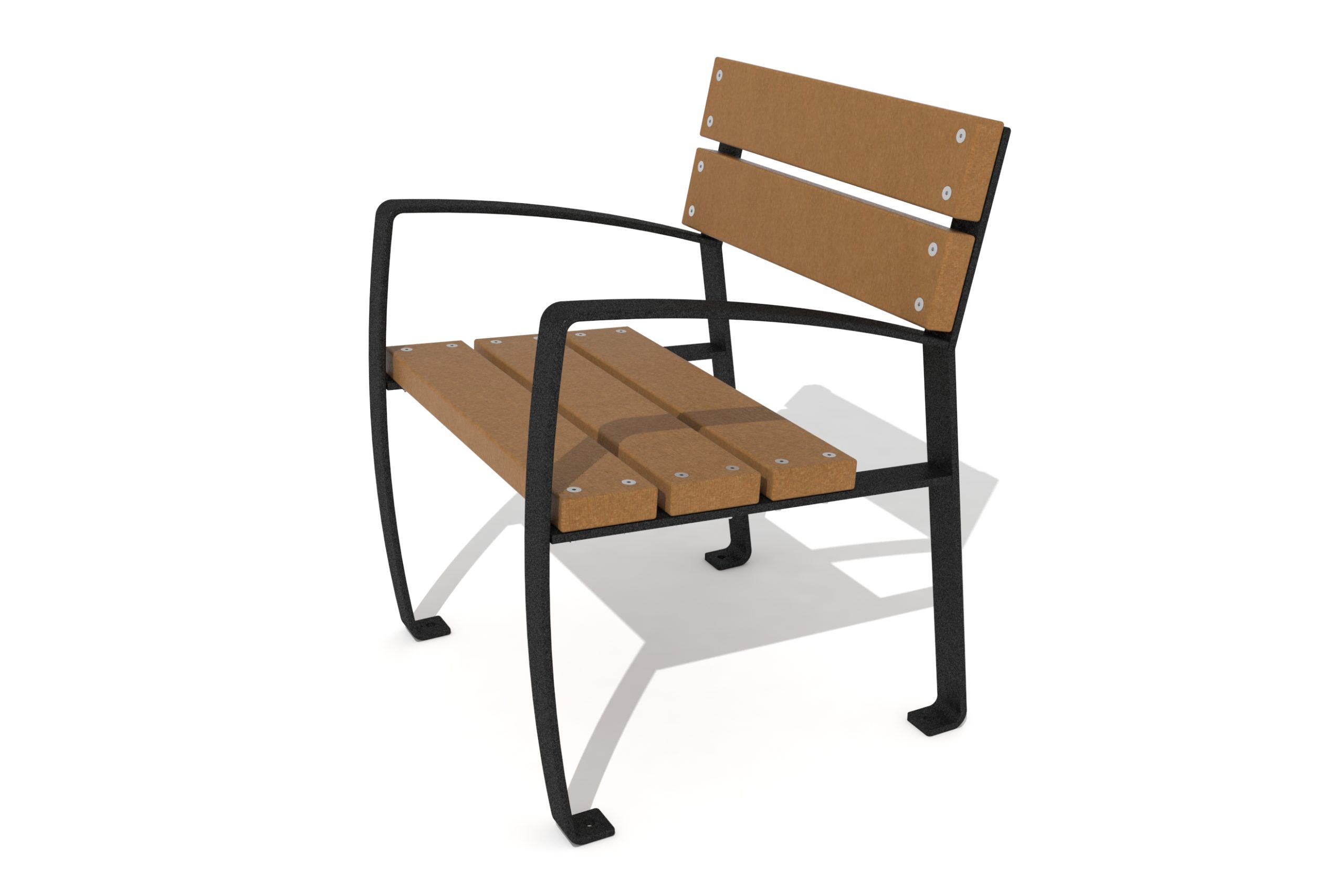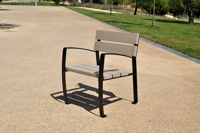 Esta pieza de mobiliario urbano es un robusto sillón fabricado en plástico reciclado que puede instalarse solo o en combinación con su «hermano» mayor, nuestro banco de plástico reciclado R1069R. Se envia desmontado para facilitar el transporte.