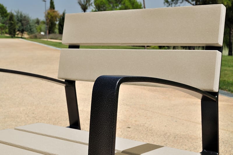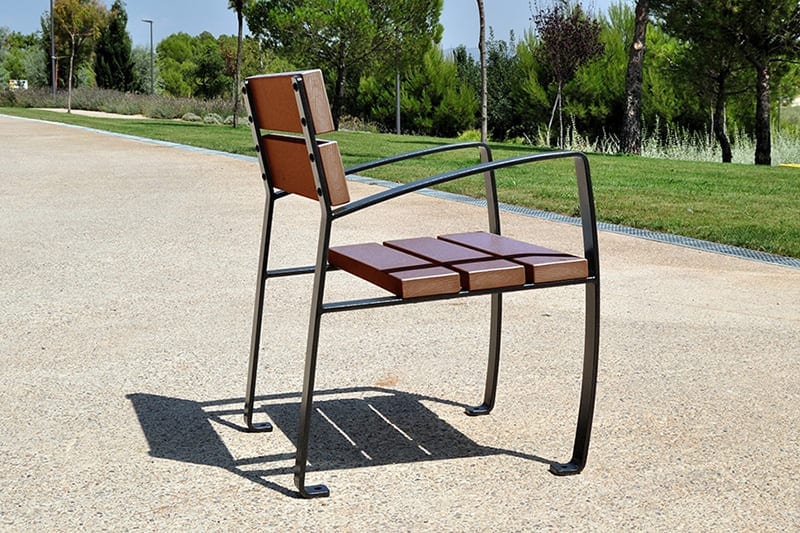 - Soportes y apoyabrazos de acero con pintura de poliéster termoendurecida.