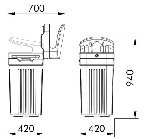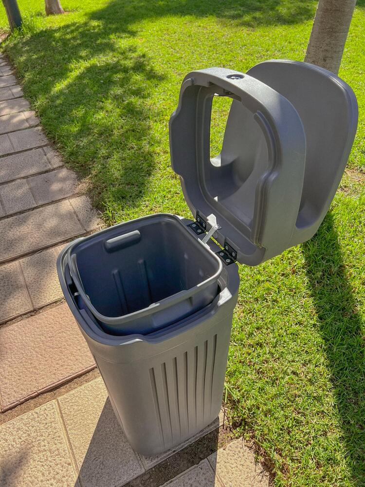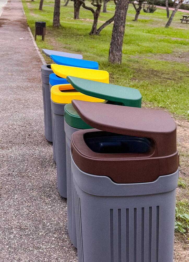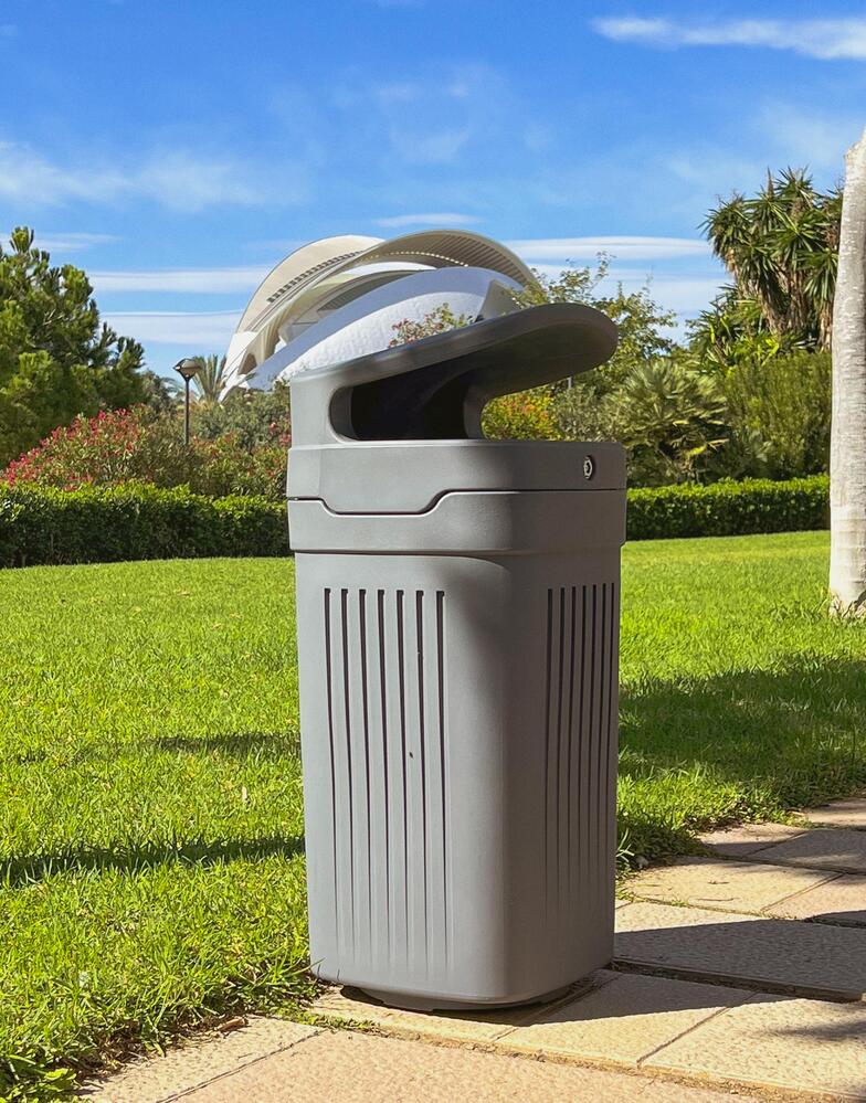 - Estructura y cubeta extraíble de polietileno de alta densidad 100% reciclable. Tapa abatible.