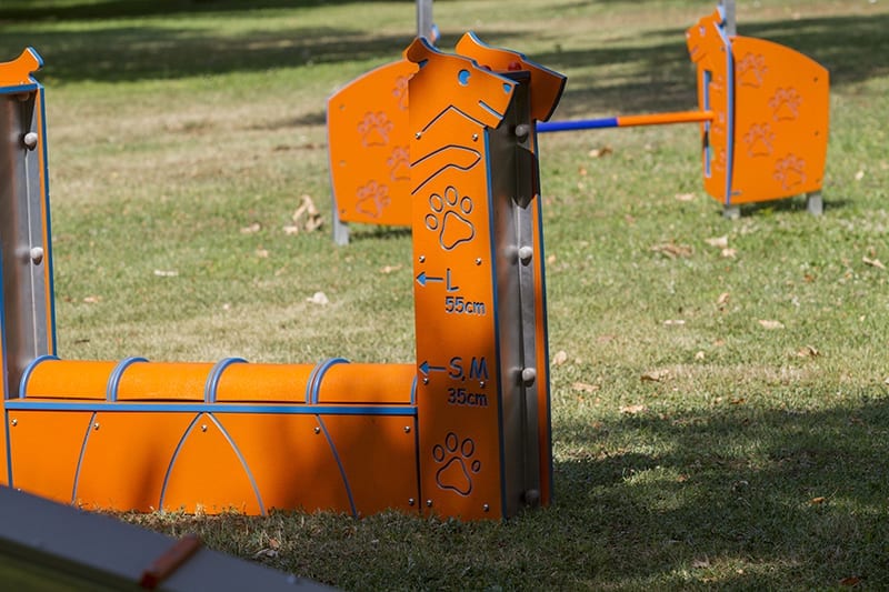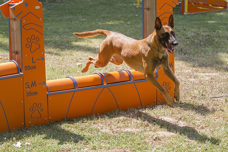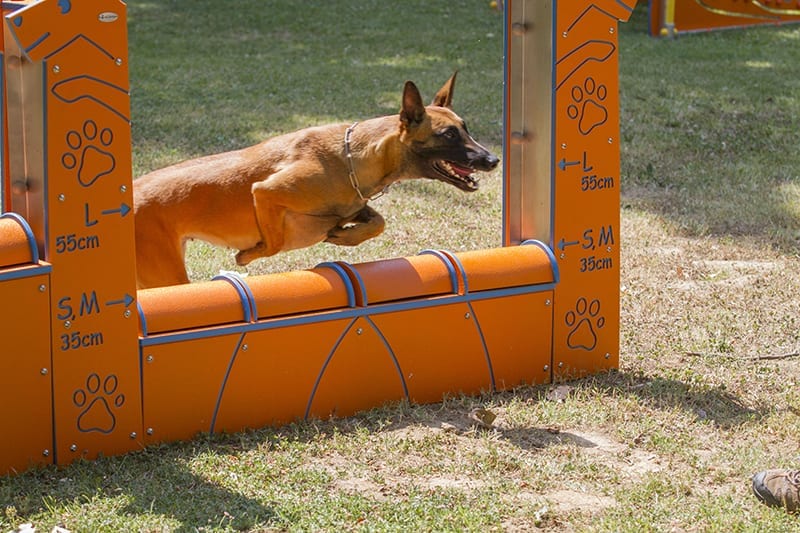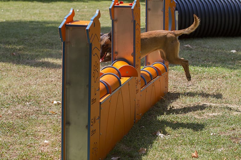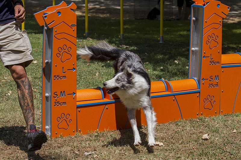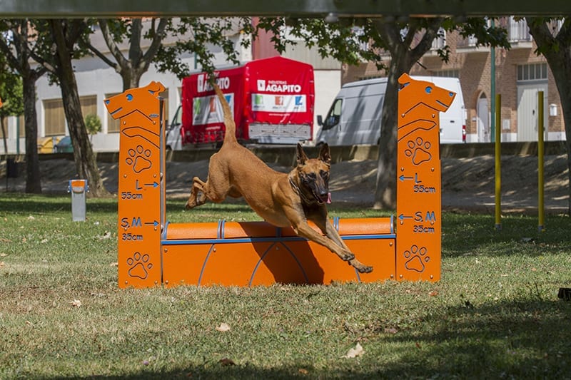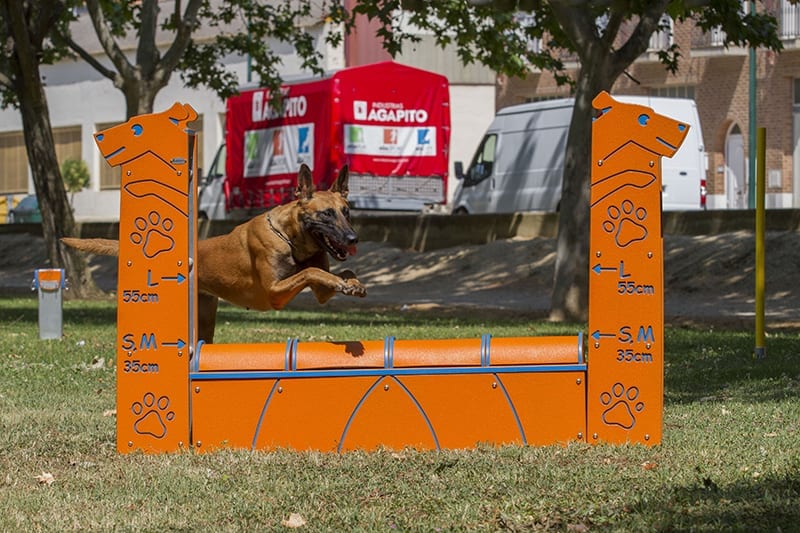 Salto de muro. Apto para categorías S y M, conforme a la Federación Canina Internacional.