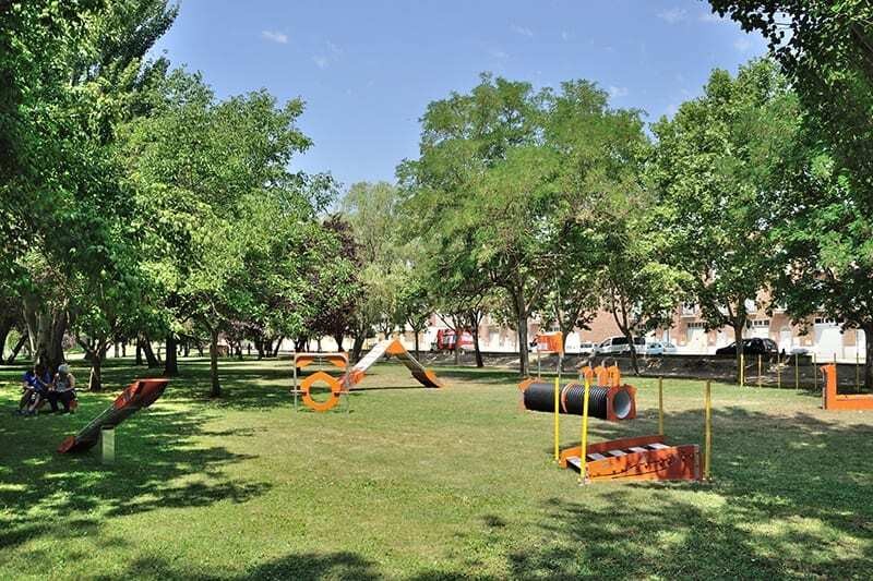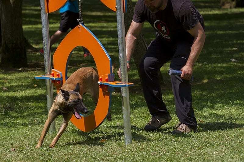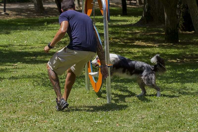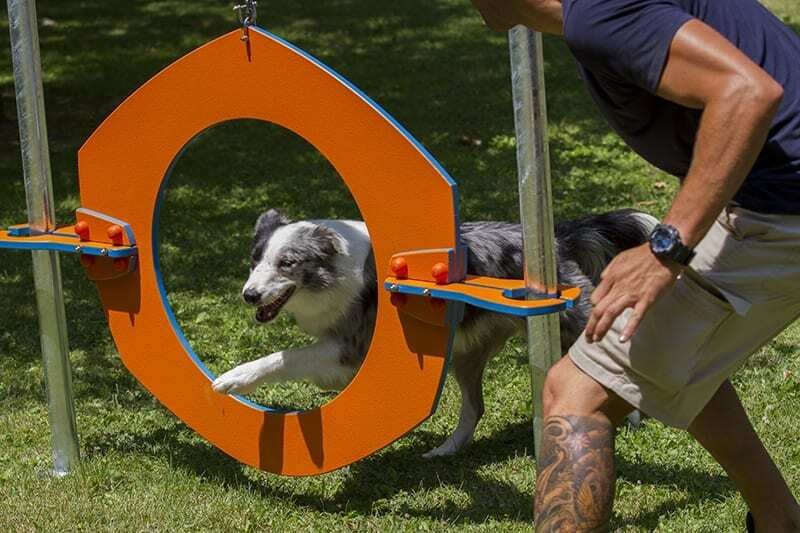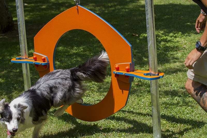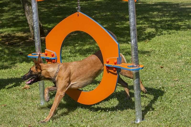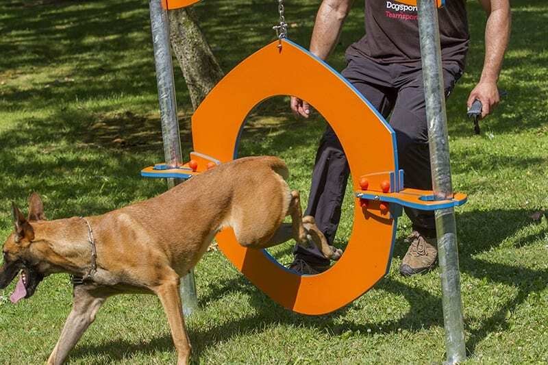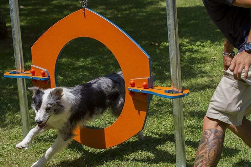 Rueda de salto ajustable apta para categorías S, M y L, conforme a los Federación Canina Internacional.