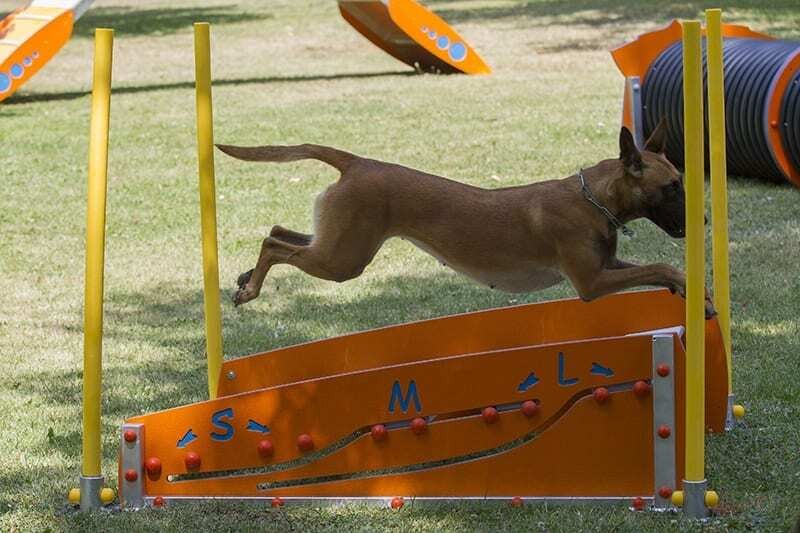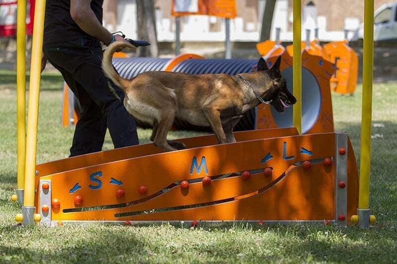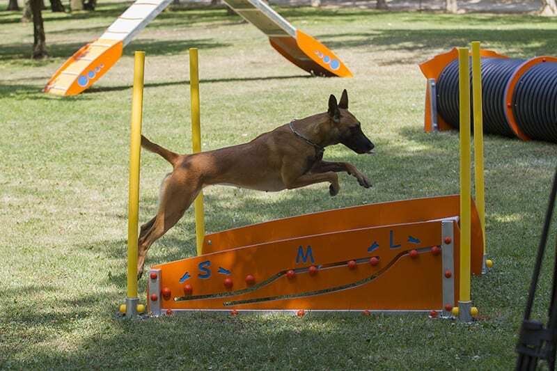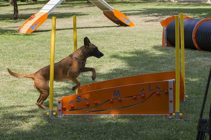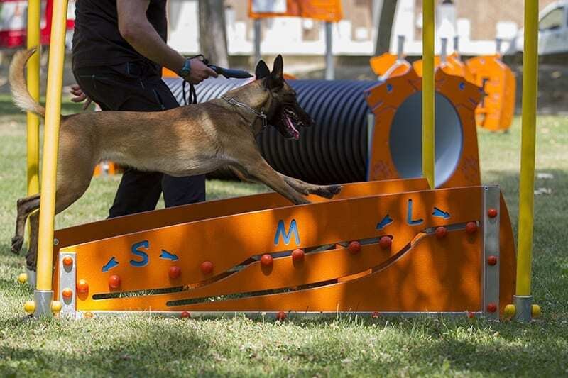 Rueda de salto ajustable apta para categorías S, M y L, conforme a los Federación Canina Internacional.