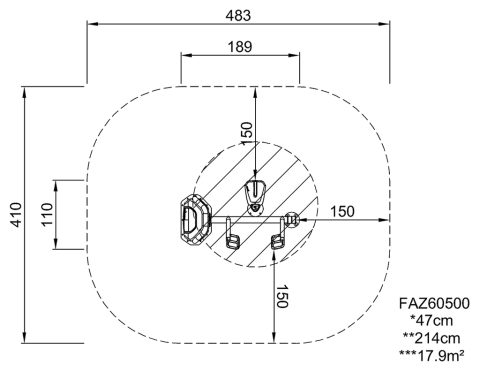 - Área de seguridad: 17.9m²