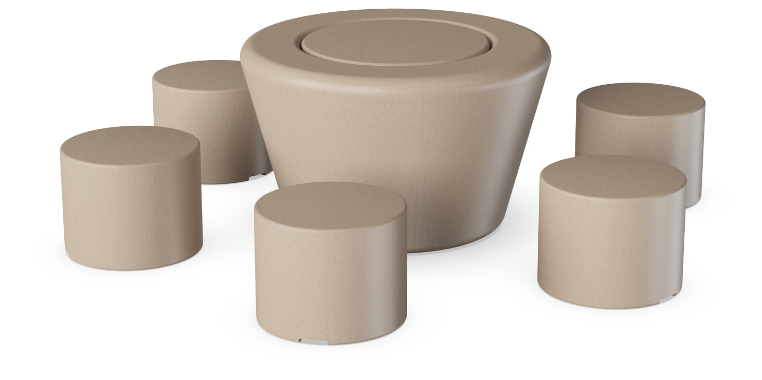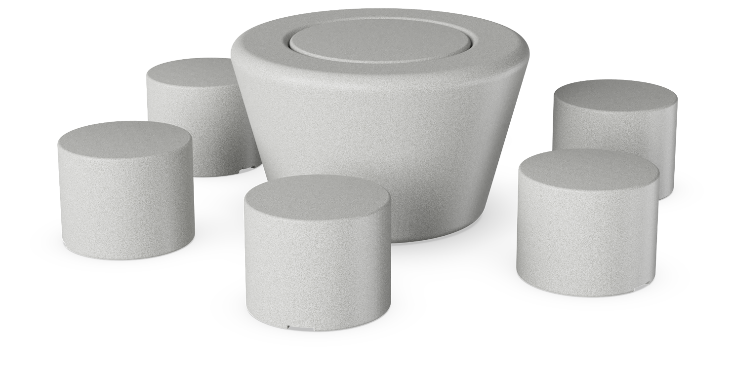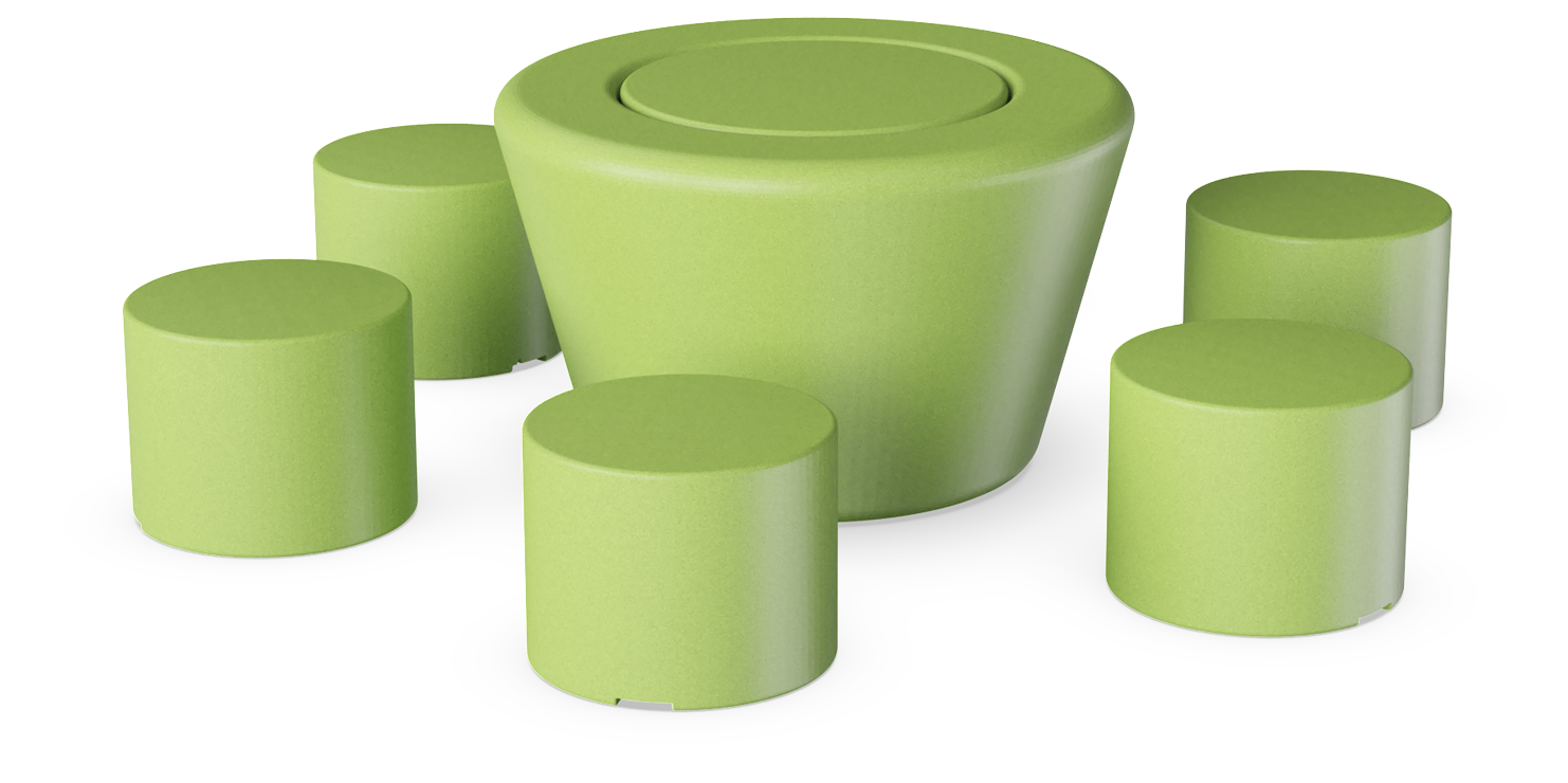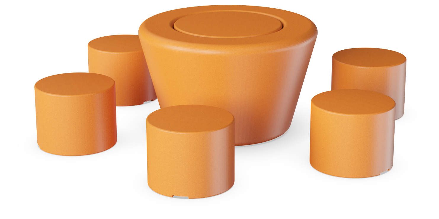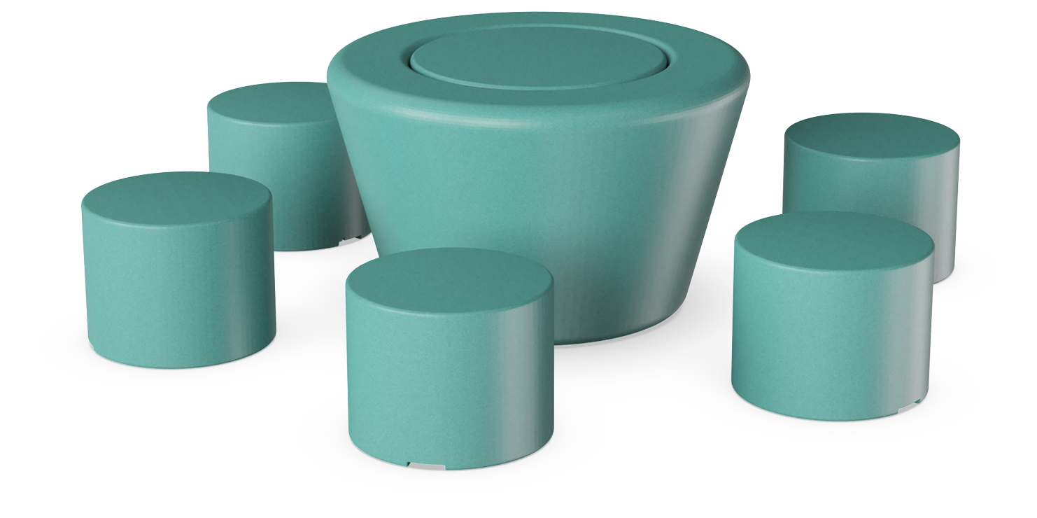 ¡Siéntate, disfruta y habla! La combinación de Loop Cono en el centro de 6 HopOp 500 circundantes abre nuevas oportunidades para crear pequeños grupos de asientos informales. Un conjunto de mesa y banco donde la forma, el material y el color se unen para formar un mobiliario divertido. LOOP Picnic HopOp 500 constituye una alternativa a los conjuntos tradicionales de mesa y banco.