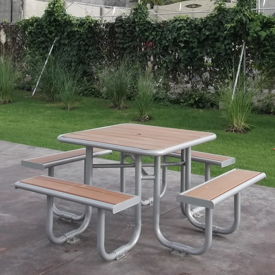 UM7-100 Mesa Cuadrada incluyente cumarú 2 Asientos 2-6 personas, anclaje superficial