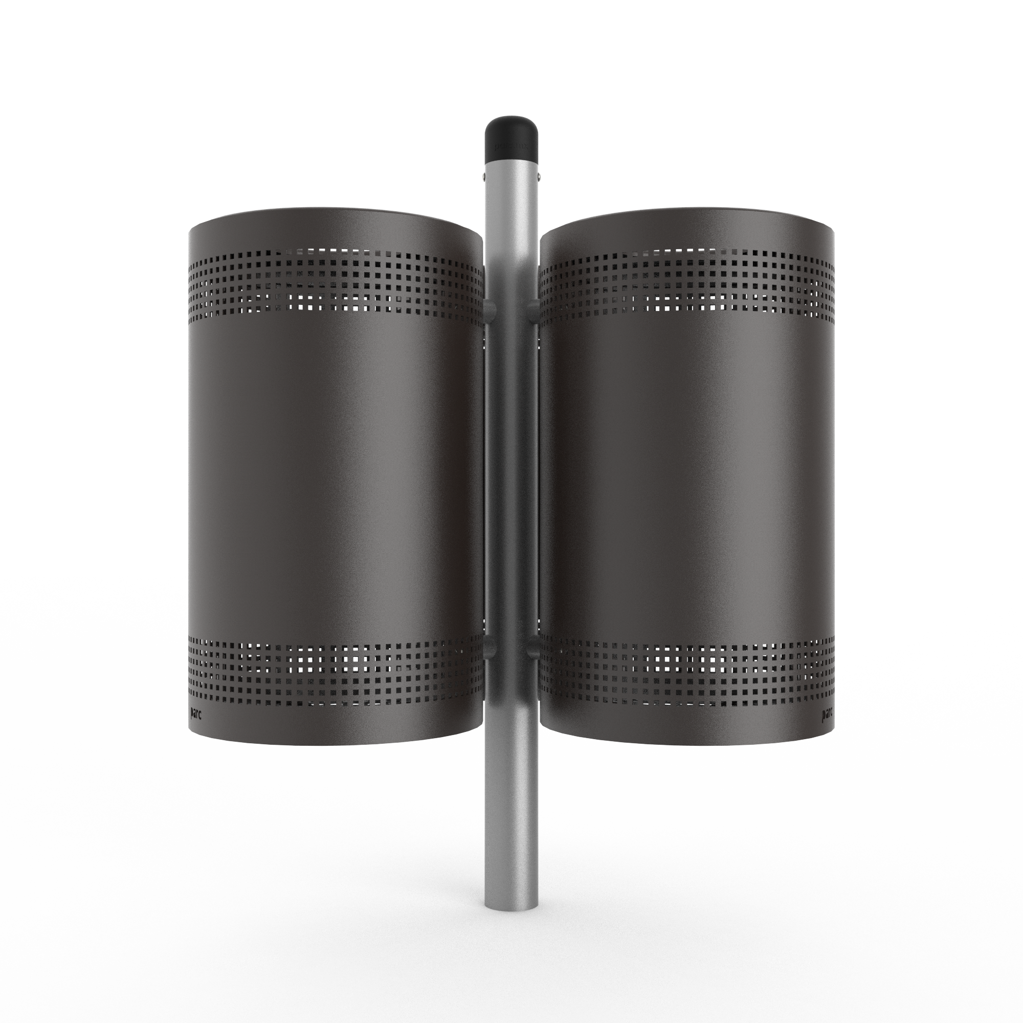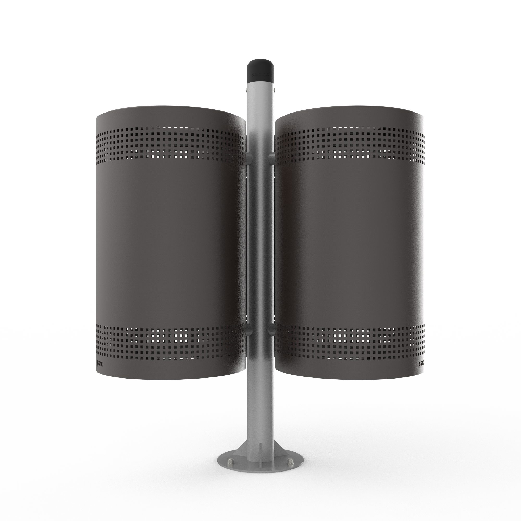 US9D-200 Basurero Street doble, con tapa domo, anclaje superficial.